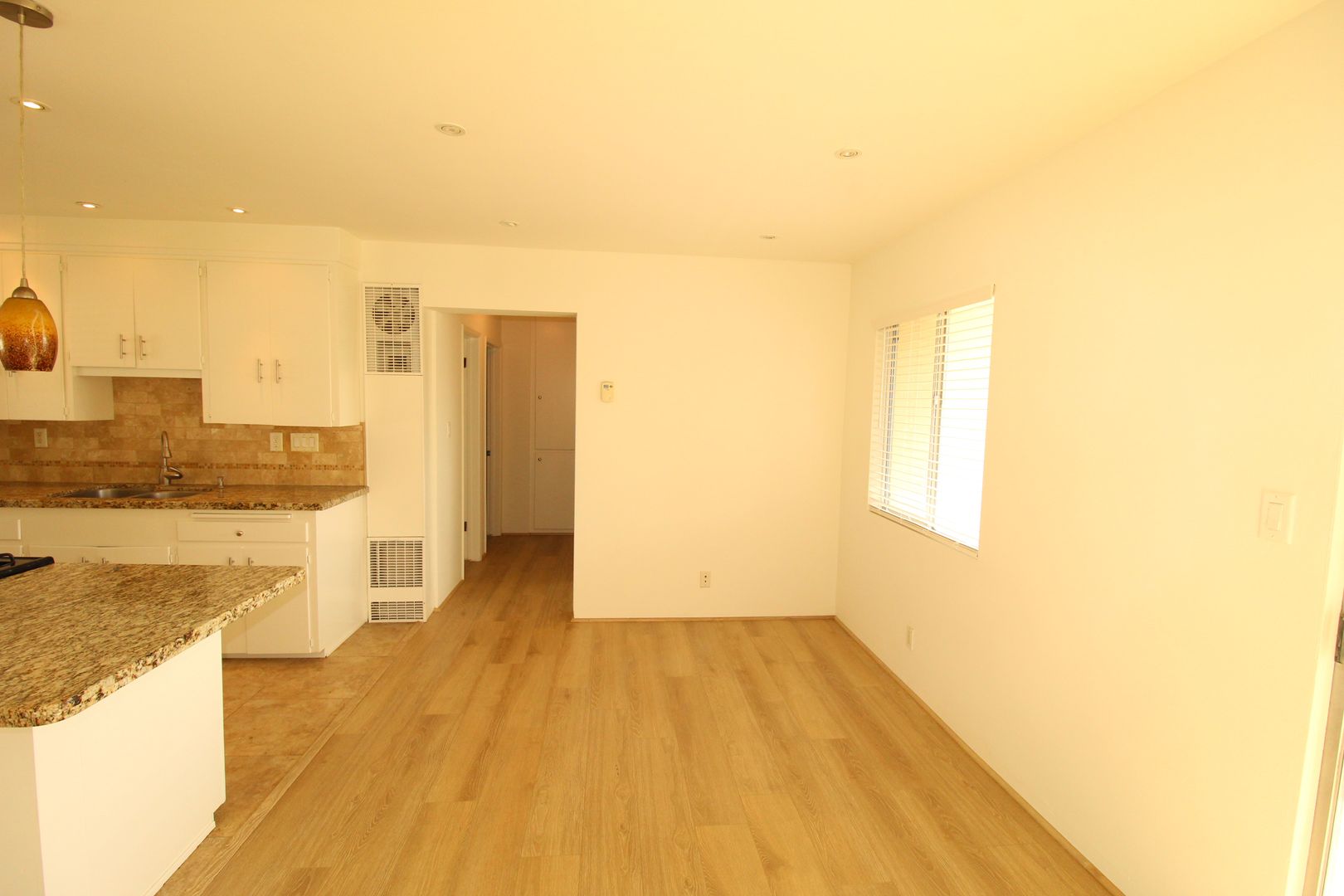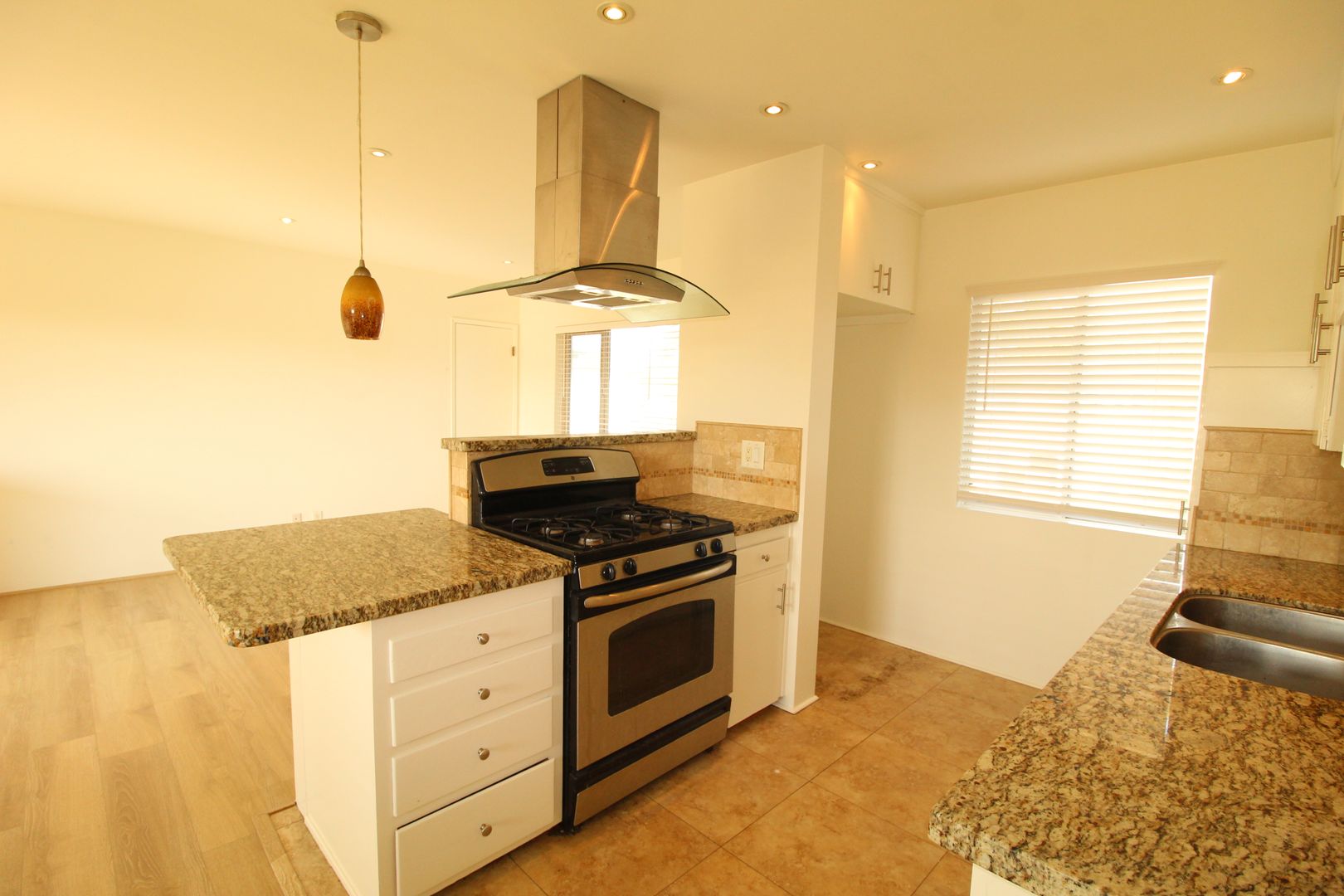 Updated Central Ventura Apartment in walking distance to Ventura College! This Upstairs 2 Bedroom 1 Bath Apartment has a large open floor plan featuring a remodeled kitchen with granite countertops, decorative back splash, freshly painted cabinetry and stainless steel gas stove provided. The large living room has newer laminate wood flooring, recessed lighting and gives you direct access to your private balcony. Other desirable upgrades include fresh interior paint, plush carpeting in the bedrooms and vinyl windows.