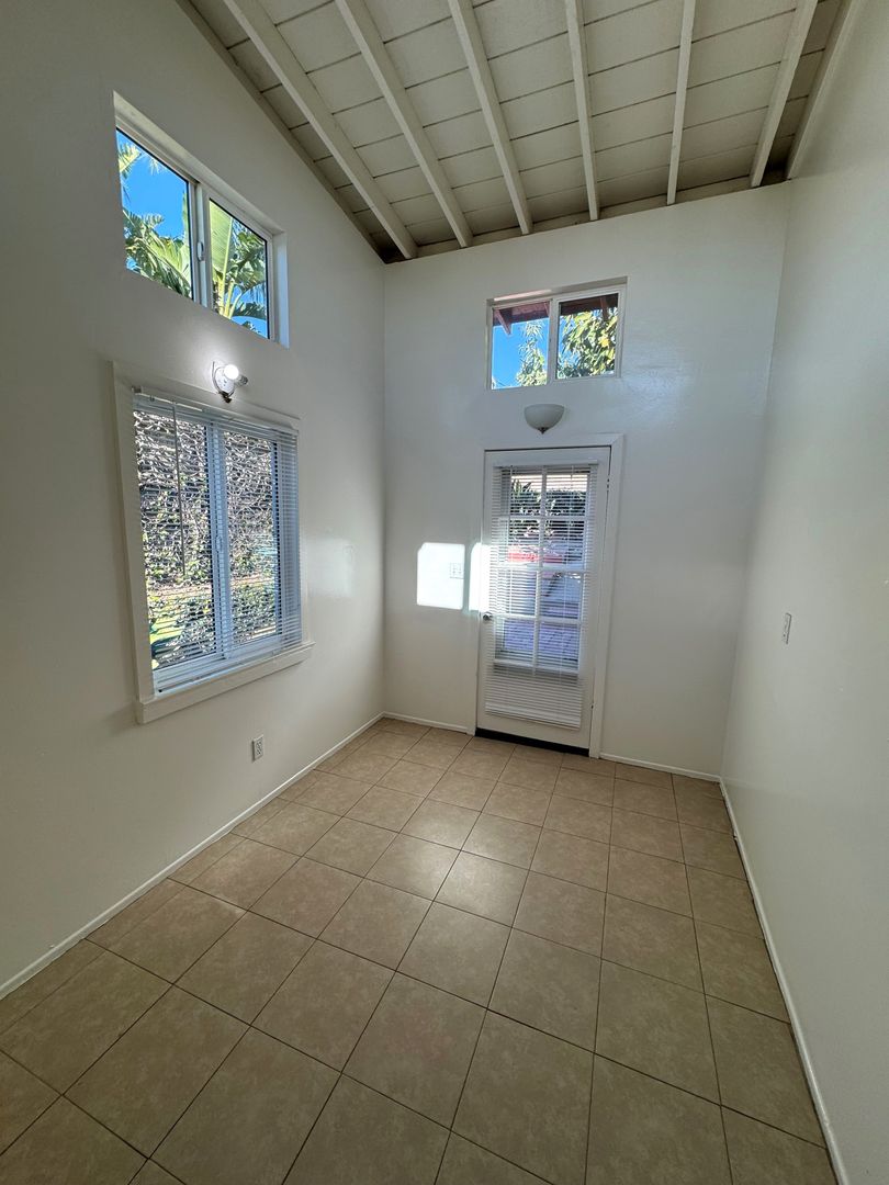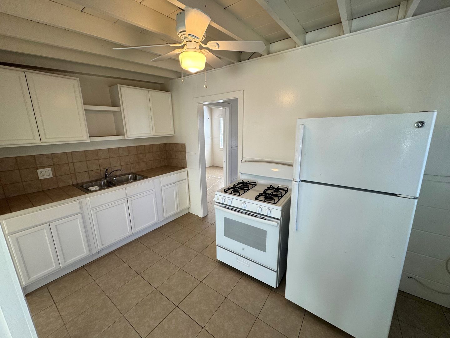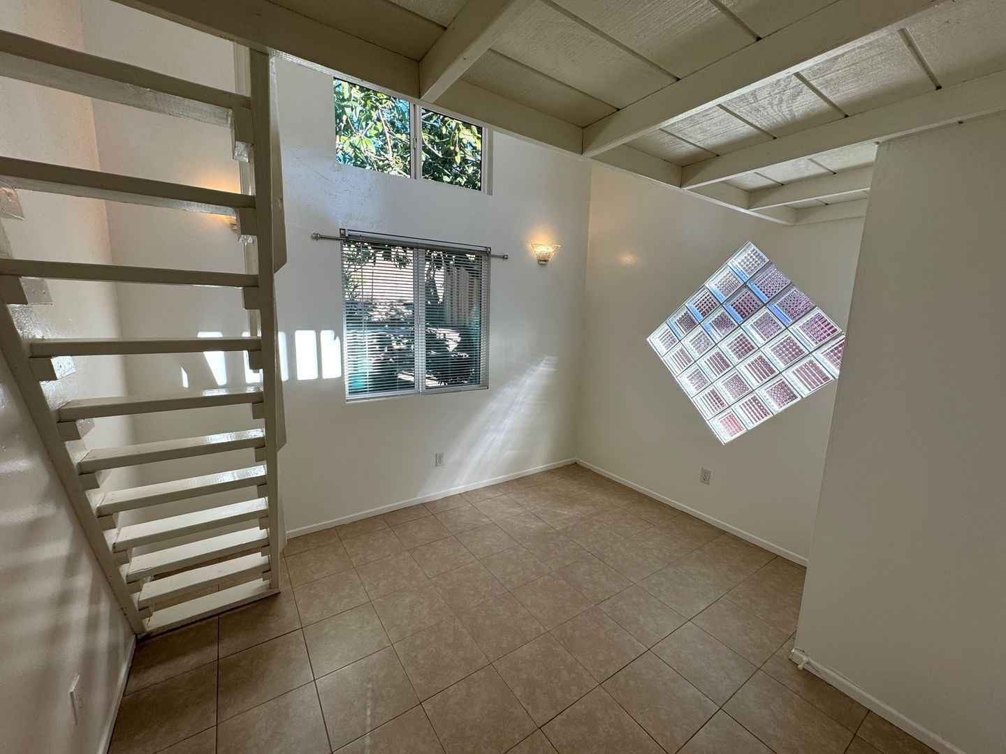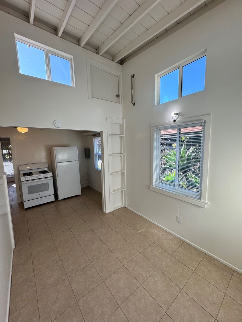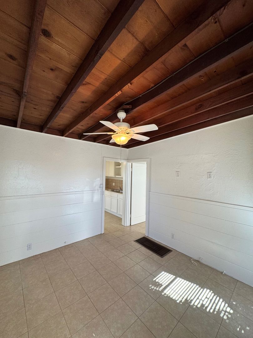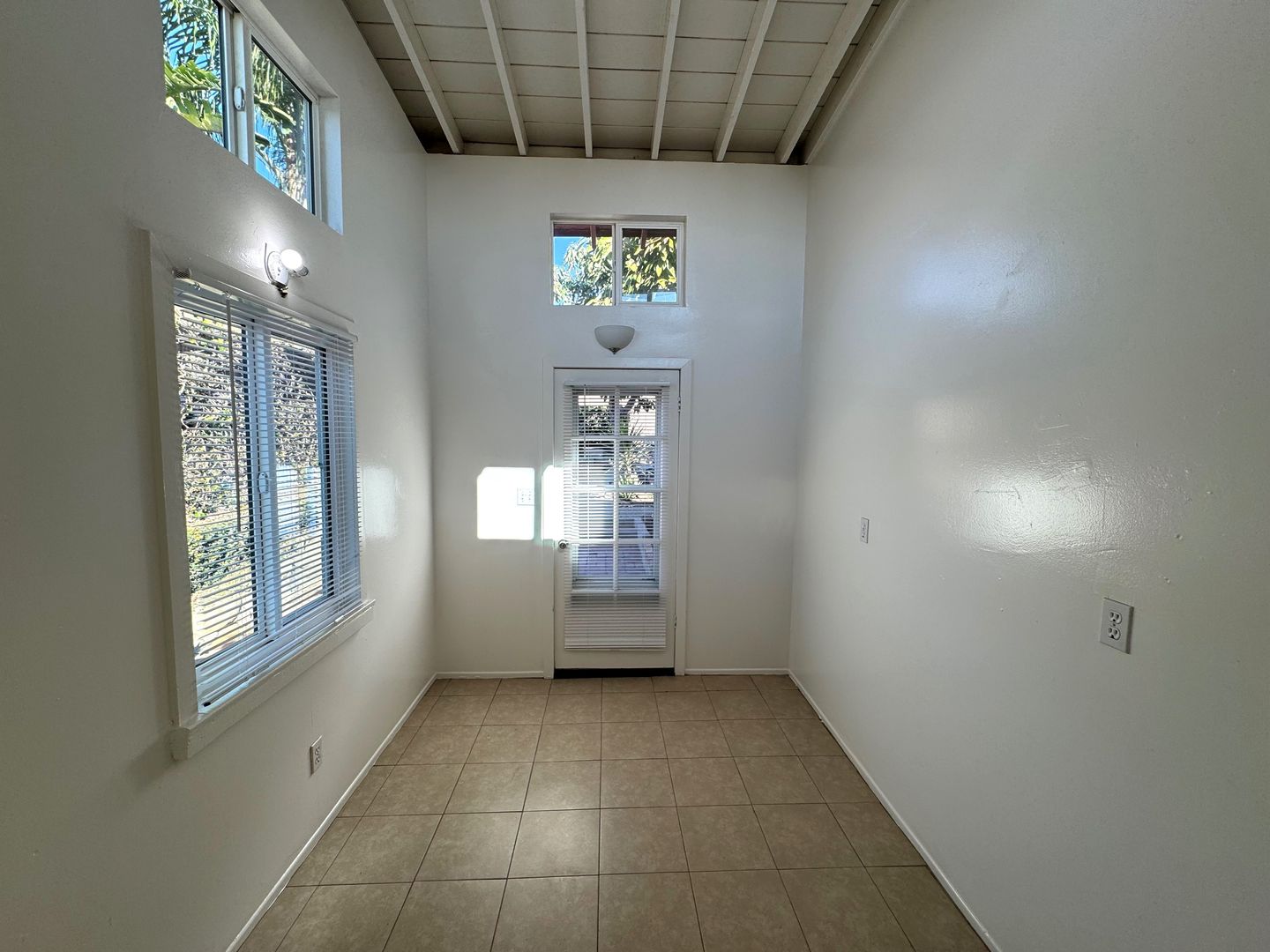 This quaint 2 Bedroom 1 Bath Home has a great hillside location just above Foothill! Tile flooring flows throughout the entire space. The home features beautiful high wood beam ceilings with tile flooring throughout the space. Your kitchen has ample cabinet space and is open to a separate dining space giving your direct access to your backyard. Tenant will have access to stackable washer/dryer hookups. Onsite storage shed is available for tenants use. Two assigned parking spaces are provided. Water and landscaping services are included in your rent.