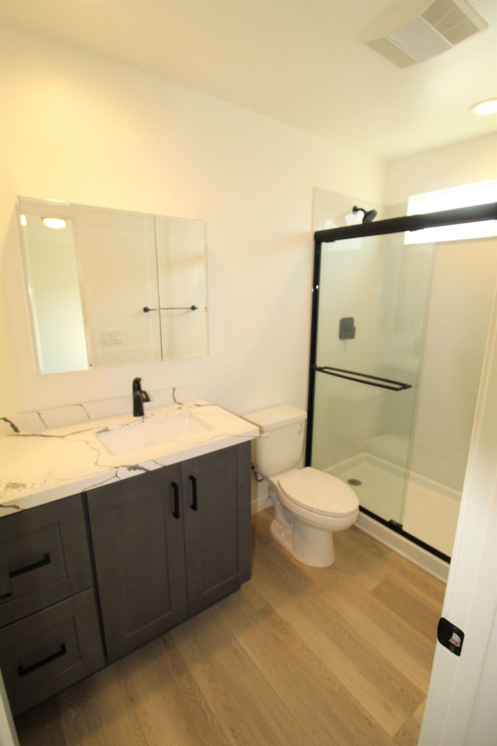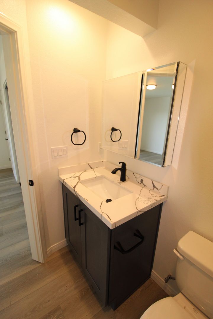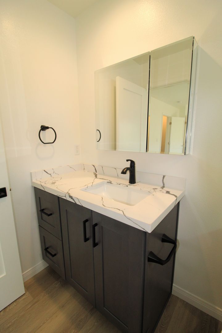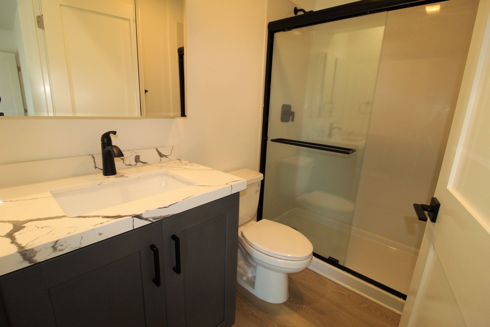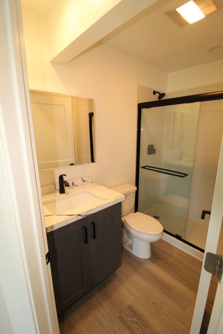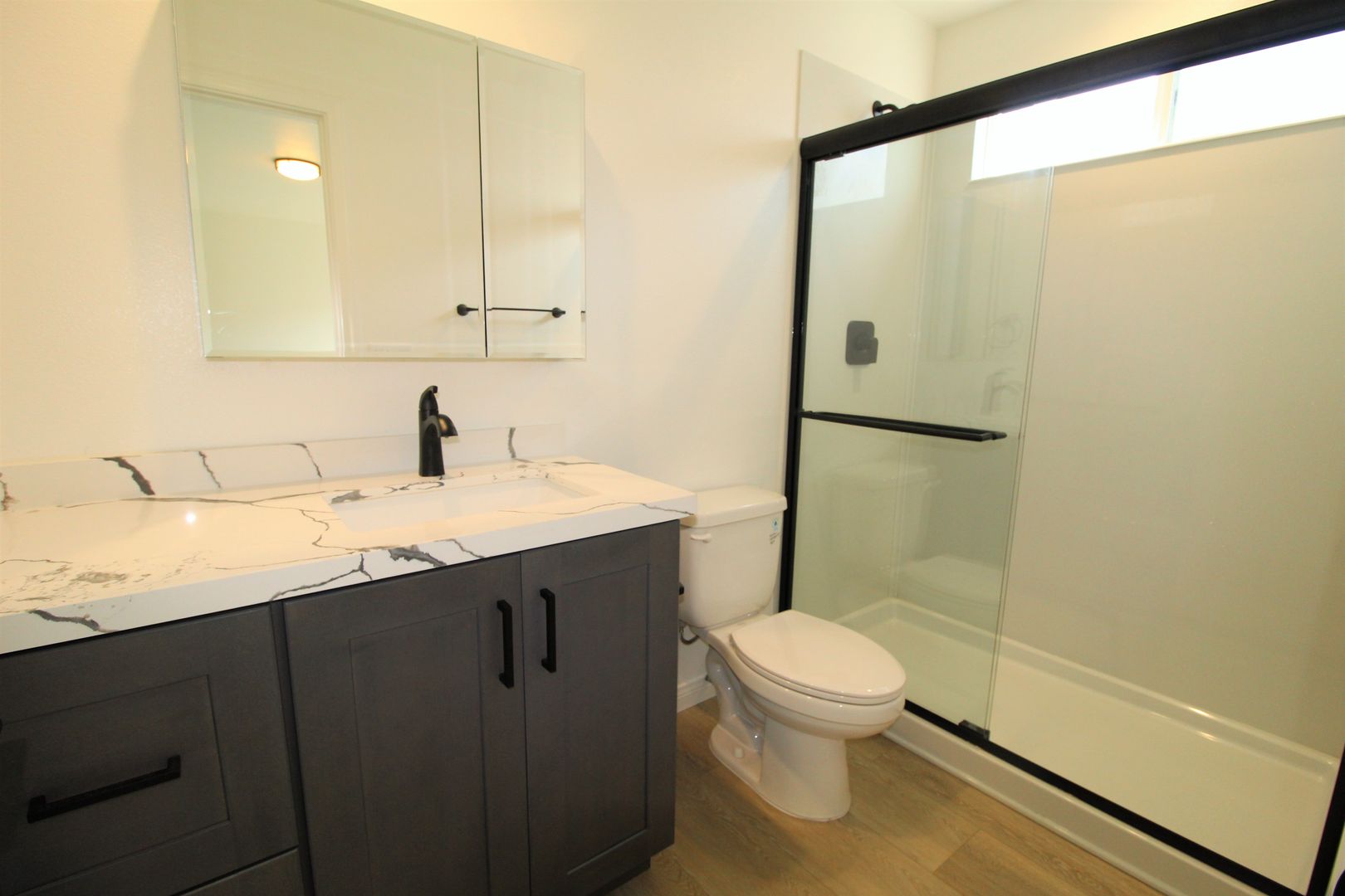 Both bedrooms located on the second floor are set up as primary suites with great closet space and remodeled private bathrooms, with continued custom cabinetry, bold quartz countertops and large walk-in showers. Other great amenities include air conditioning, private balcony, double pane vinyl windows and newer blinds.