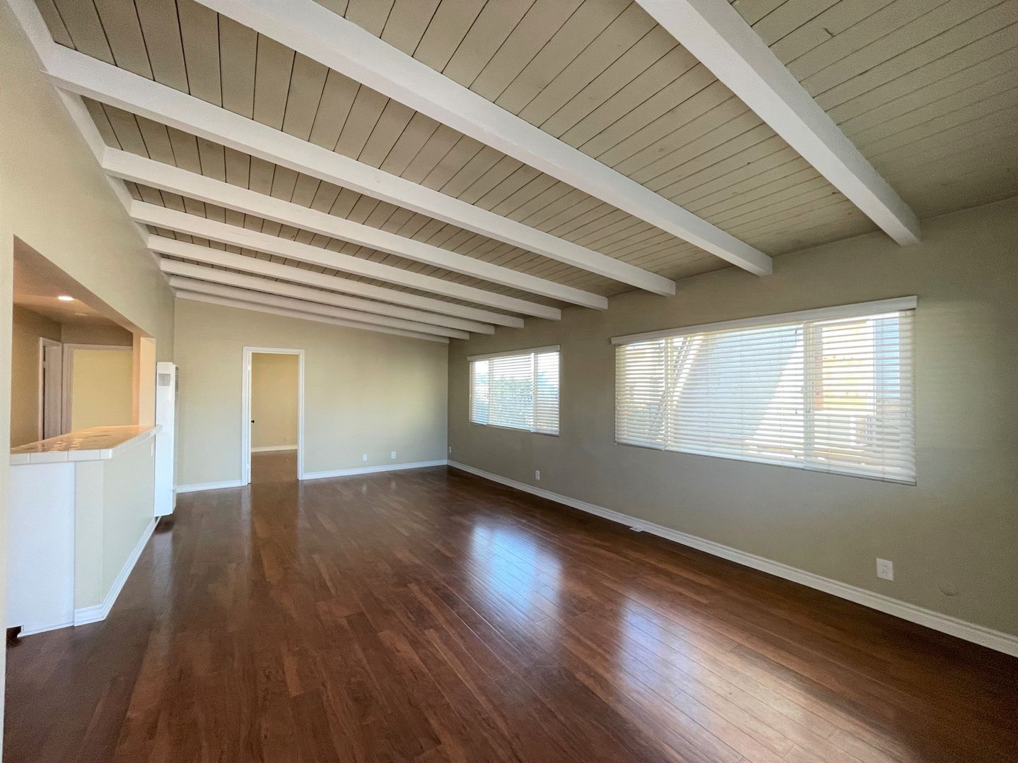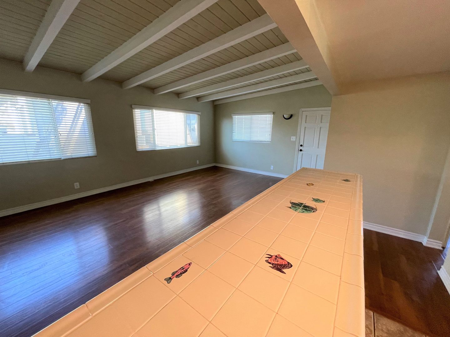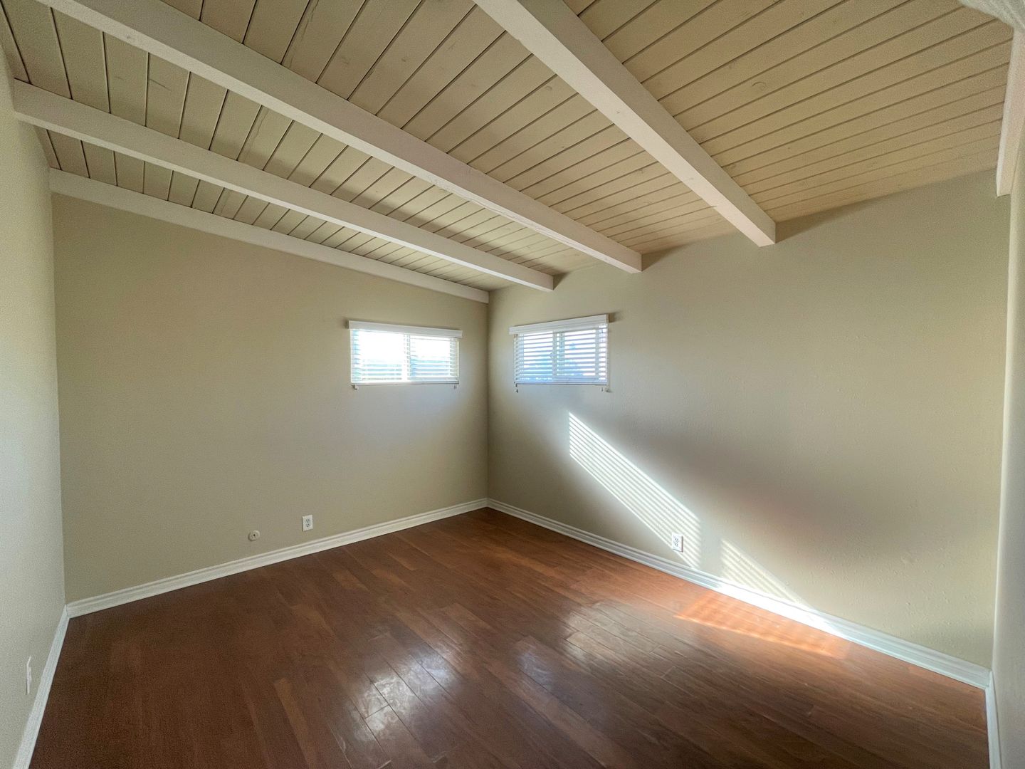 Amazing location in the heart of Pierpont Beach! This 2 Bedroom 1.75 Bath upstairs Duplex with additional Den has a huge living area featuring laminate wood flooring, beautiful painted wood beam ceilings and custom paint colors. Your kitchen has open sight lines to the living area, with white cabinetry and tile countertops and a gas stove, dishwasher and refrigerator provided. The laminate wood flooring flows through both bedrooms and large den, which is perfect to be used as a home office or family room. Enjoy having a private deck, perfect to be used on those beach summer nights!