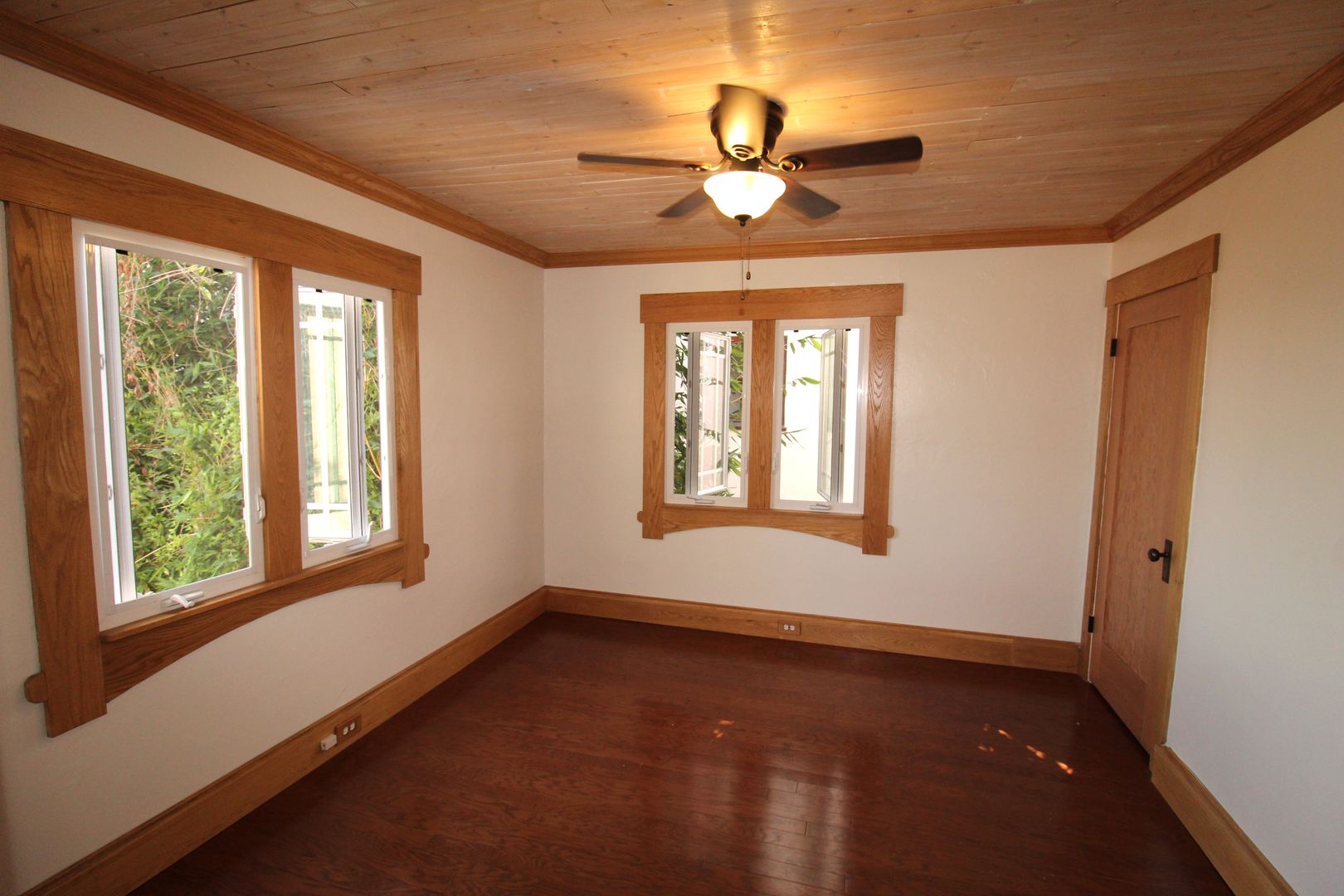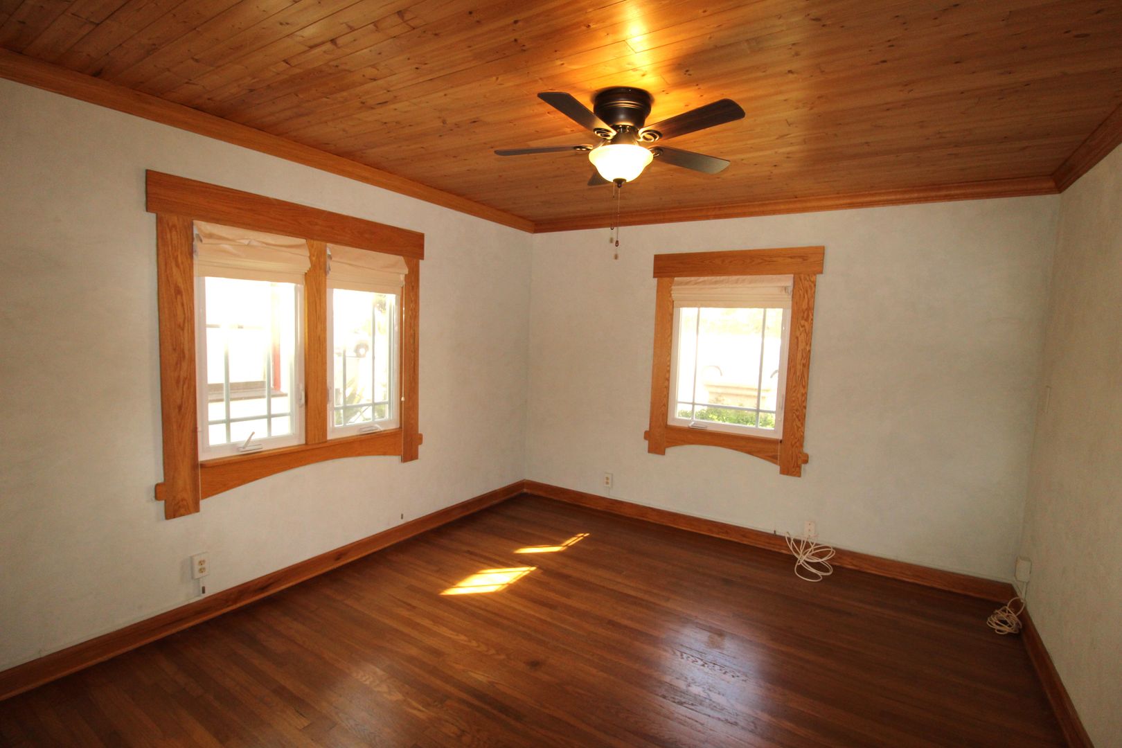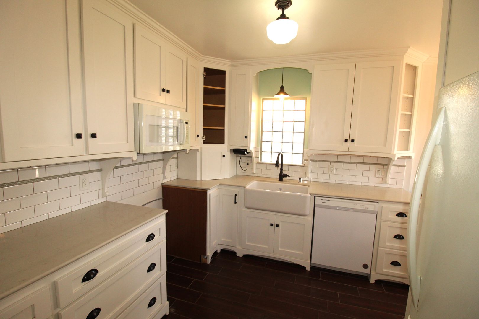 Hillside Downtown Ventura Home with gorgeous ocean views! Walking into this beautiful single story 2 Bedroom 1 Bath Home you are greeted with original oak hardwood flooring, fireplace with beautiful wood mantel and walls featuring reclaimed antique Chicago brick and American clay plaster. Both bedrooms have continued oak hardwood flooring, tongue and groove ceilings and ceiling fans. The timeless kitchen has updated white shaker cabinetry, quartz countertops, subway tile backsplash and farmhouse sink (new stove being installed not photographed). Just off the kitchen you have a quaint eat-in dining area with built-in banquet seating, additional accent brick wall and peek a boo ocean views.