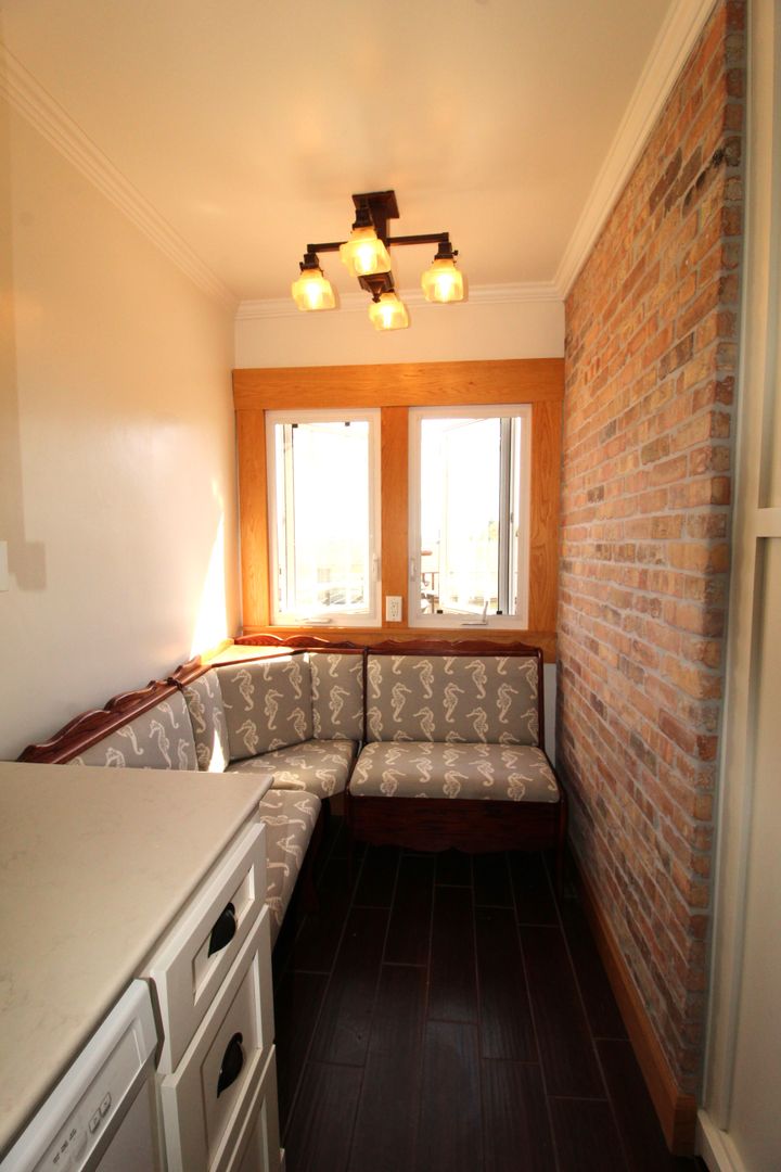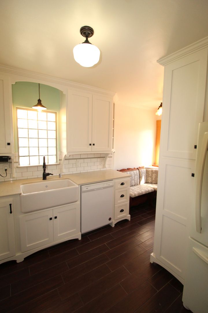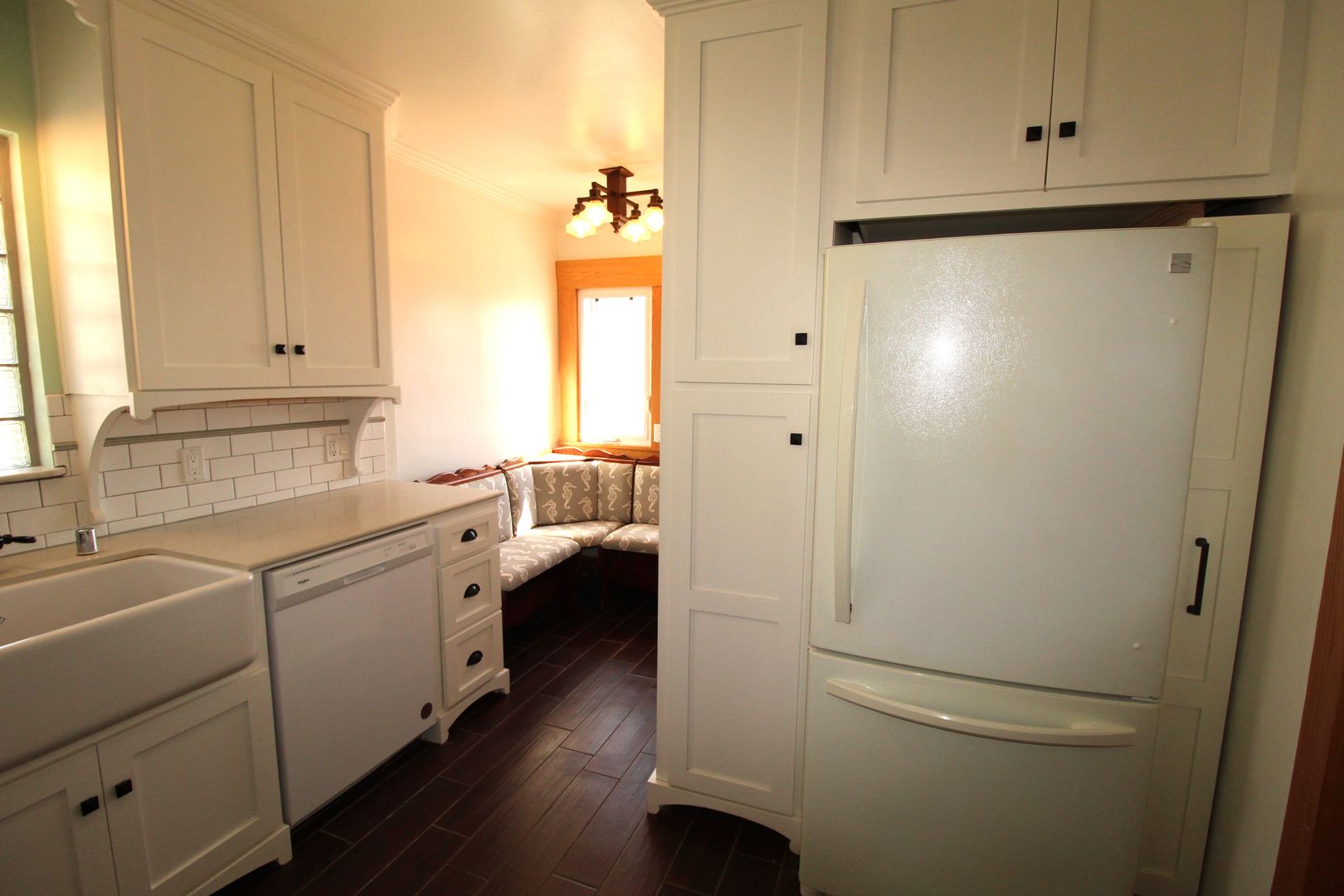 Hillside Downtown Ventura Home with gorgeous ocean views! Walking into this beautiful single story 2 Bedroom 1 Bath Home you are greeted with original oak hardwood flooring, fireplace with beautiful wood mantel and walls featuring reclaimed antique Chicago brick and American clay plaster. Both bedrooms have continued oak hardwood flooring, tongue and groove ceilings and ceiling fans. The timeless kitchen has updated white shaker cabinetry, quartz countertops, subway tile backsplash and farmhouse sink (new stove being installed not photographed). Just off the kitchen you have a quaint eat-in dining area with built-in banquet seating, additional accent brick wall and peek a boo ocean views.