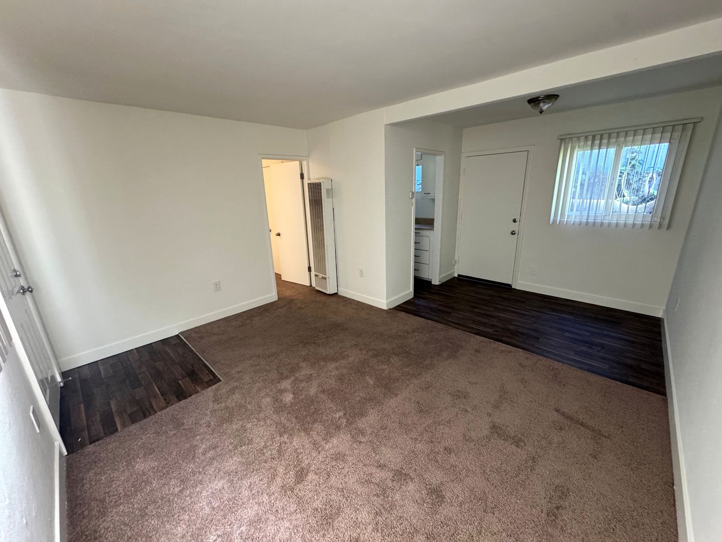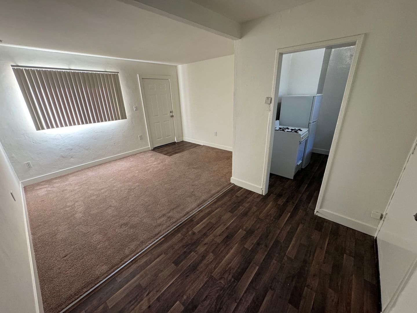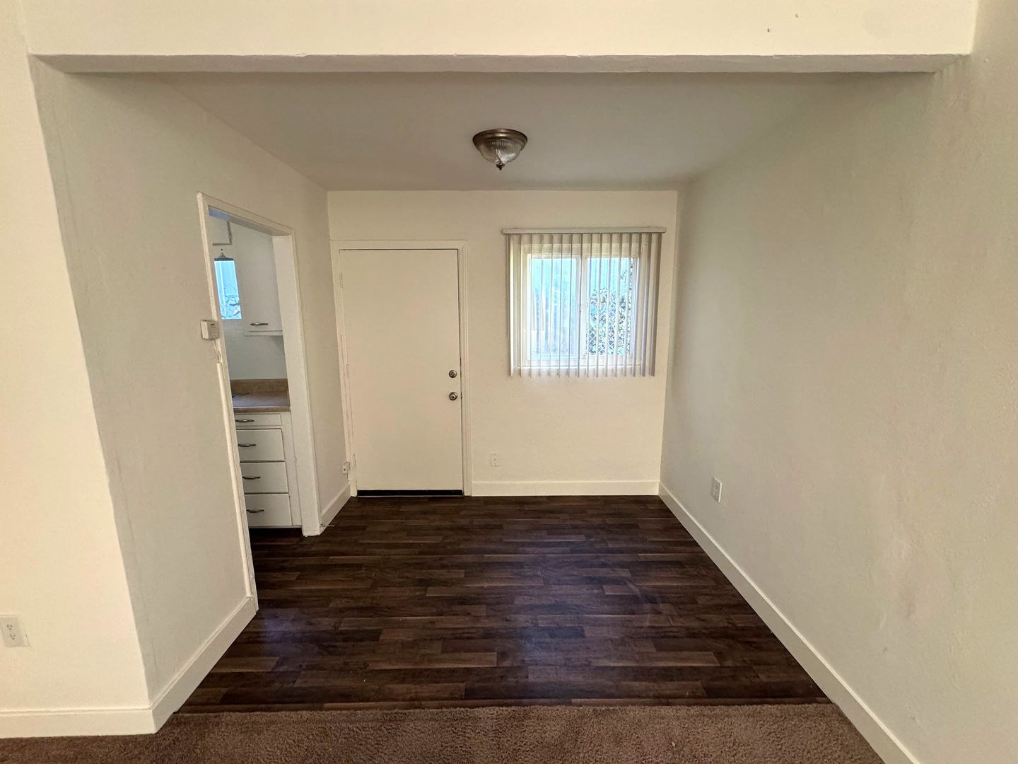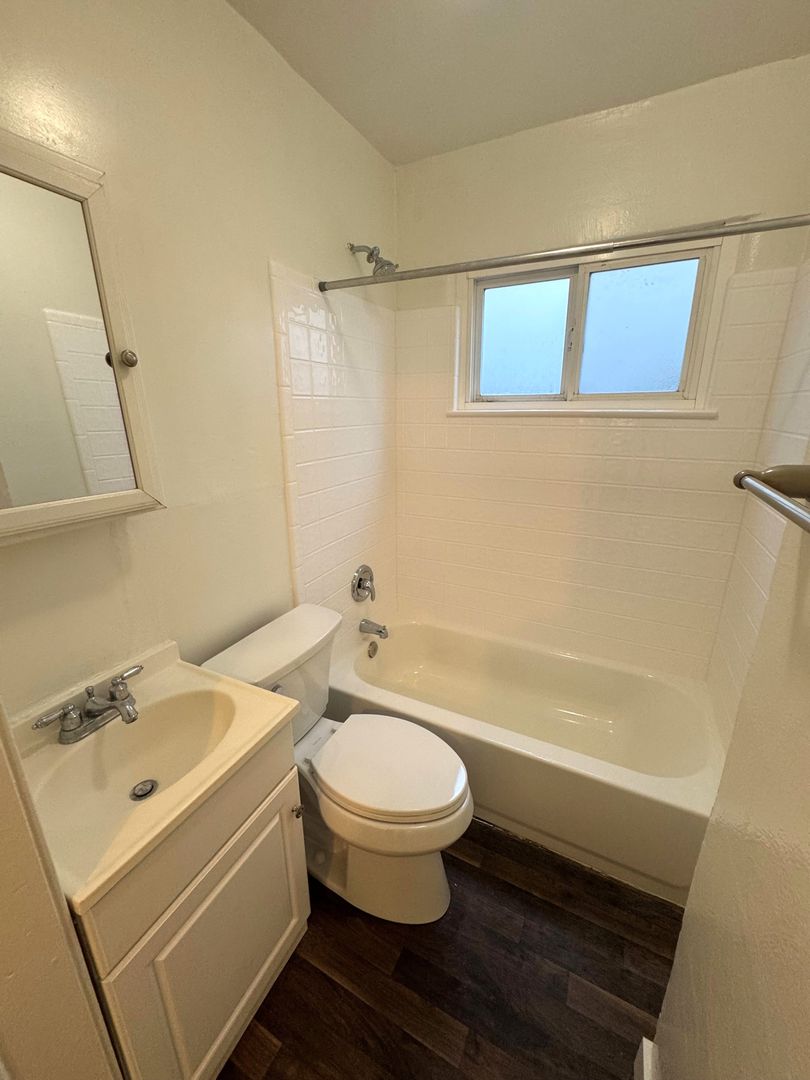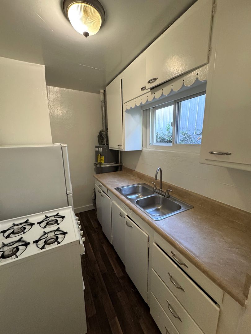 Affordable Apartment located near Historic Downtown Ventura! This downstairs one bedroom one bath apartment is a great starter! The apartment has recently refurbished with newer carpet and freshly painted interior. The galley kitchen has a small eat-in dining area with freshly painted cabinets and formica countertops, newer wood like vinyl flooring, with a gas stove and refrigerator provided. Your bedroom features a private bathroom with newer wood like vinyl flooring.