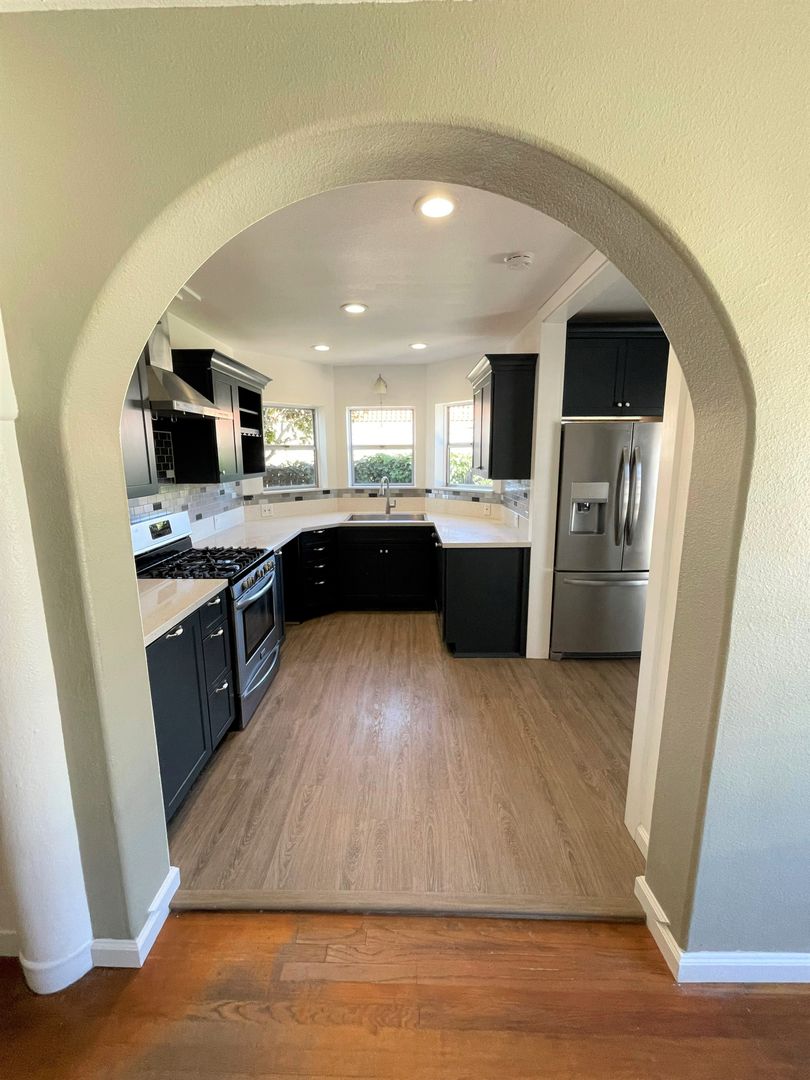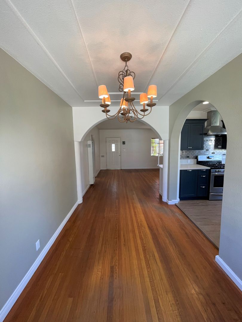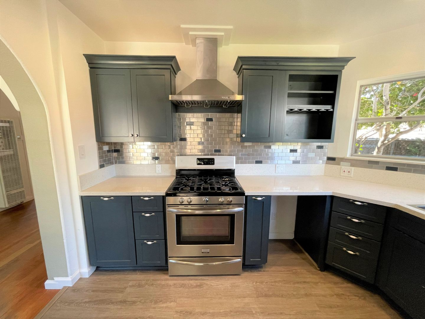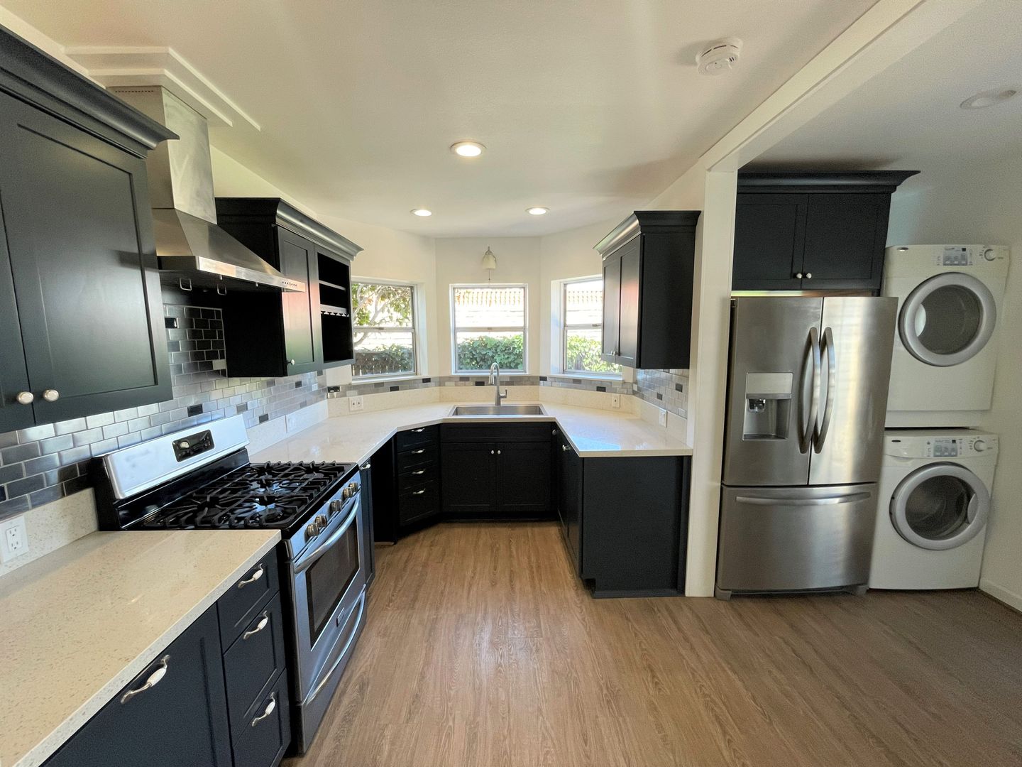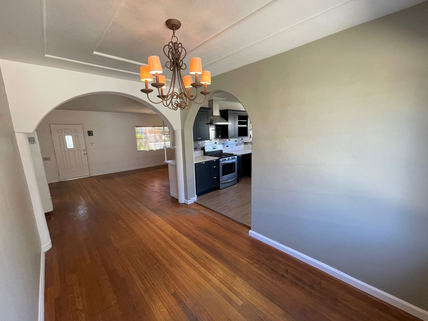 Adorable 1940's Bungalow! This 2 Bedroom 1 Bath Charmer has great character with original hardwood flooring throughout and arched architectural details. The large living space is open to your dining room with trey ceilings. The remodeled kitchen features custom painted cabinetry with wine storage, stainless steel appliances and quartz countertops. Both bedrooms are spacious in size, with great closet and built-in cabinetry. A washer/dryer is provided off the kitchen.