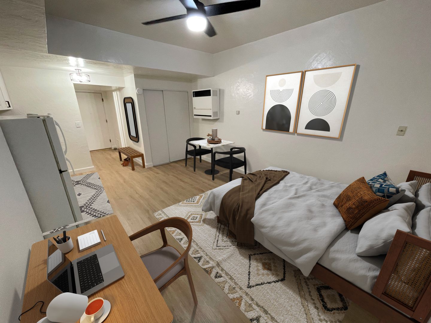 The nicely maintained building has an onsite laundry room for your use and in walking distance to Downtown Ventura restaurants and entertaining! All utilities included in your rent (including WIFI! Wifi speed is approximately 3mbps. Additional connection is tenant expense)