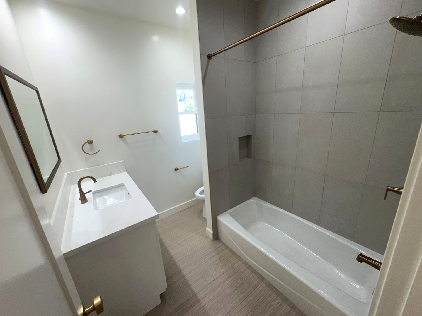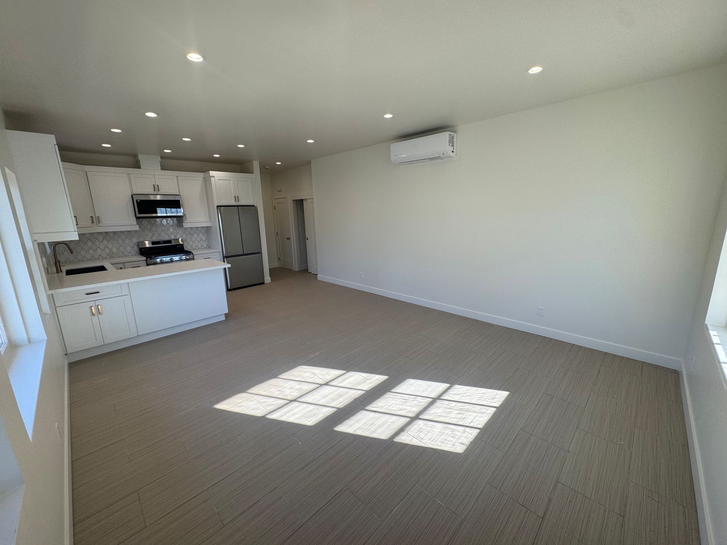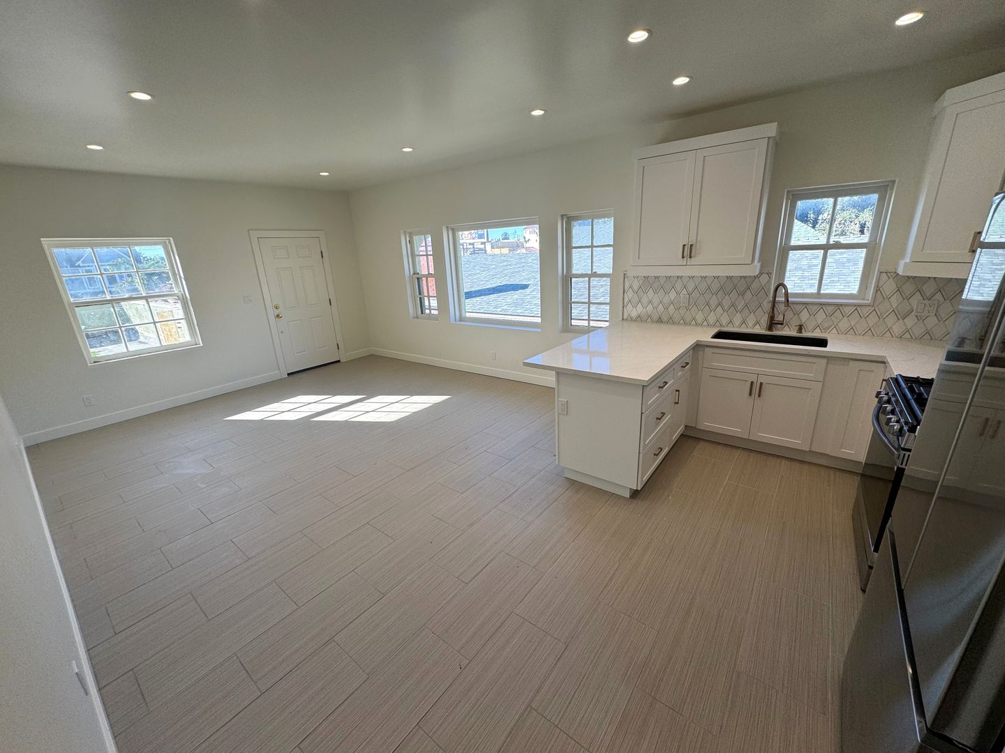 Enjoy modern living in the heart of Downtown Ventura! This beautifully remodeled 1 bedroom, 1 bathroom apartment is located above commercial spaces and has been completely updated from top to bottom. New tile flooring runs throughout the home, leading into a stunning kitchen that overlooks the living area—featuring white shaker-style cabinetry, quartz countertops, stainless steel appliances, a bold backsplash, and elegant gold hardware. The upgrades continue into the bathroom with a brand-new vanity, a tiled shower enclosure, and new fixtures. Additional highlights include recessed lighting, air conditioning, and a brand-new tankless water heater.