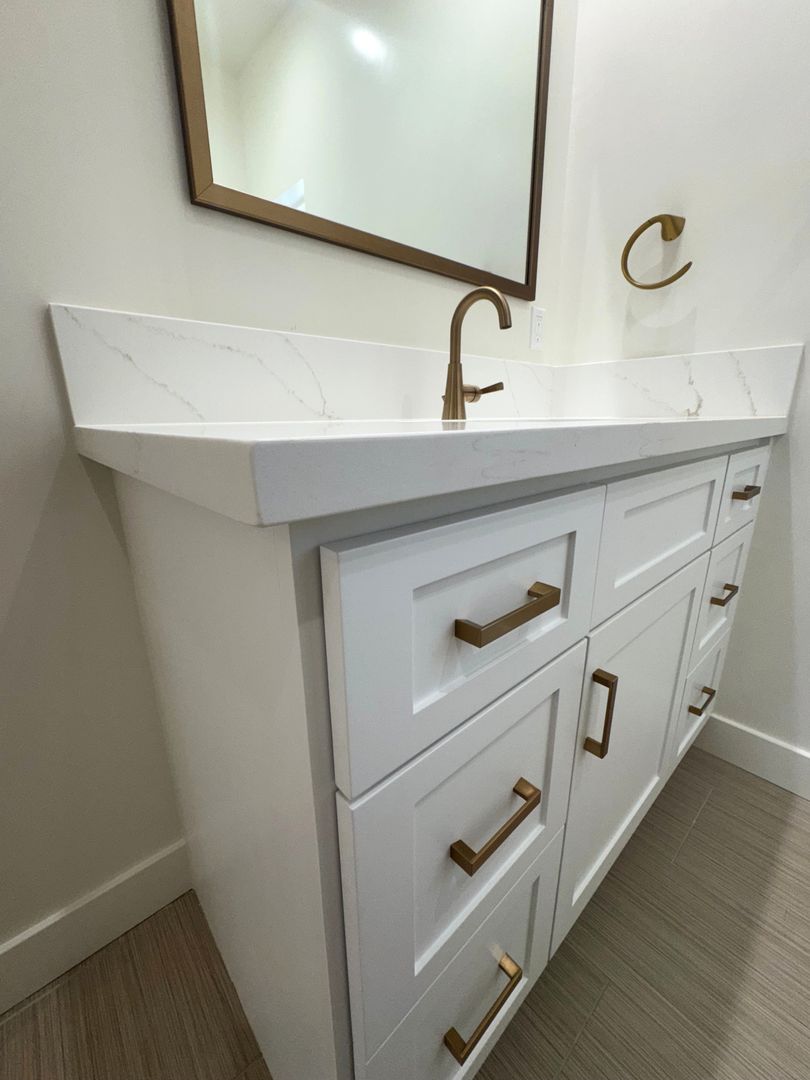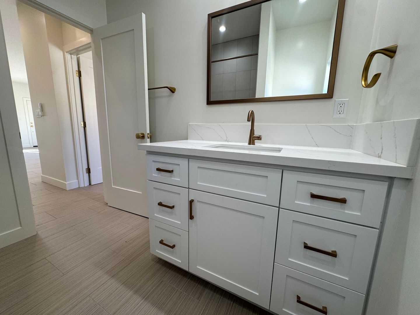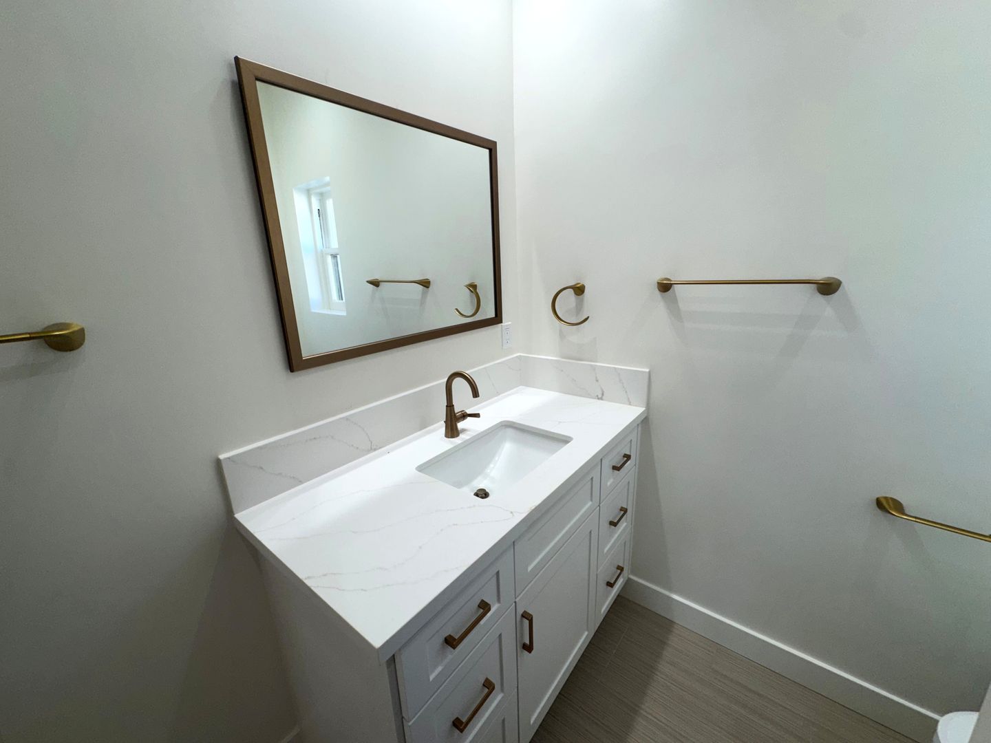 Enjoy modern living in the heart of Downtown Ventura! This beautifully remodeled 1 bedroom, 1 bathroom apartment is located above commercial spaces and has been completely updated from top to bottom. New tile flooring runs throughout the home, leading into a stunning kitchen that overlooks the living area—featuring white shaker-style cabinetry, quartz countertops, stainless steel appliances, a bold backsplash, and elegant gold hardware. The upgrades continue into the bathroom with a brand-new vanity, a tiled shower enclosure, and new fixtures. Additional highlights include recessed lighting, air conditioning, and a brand-new tankless water heater.