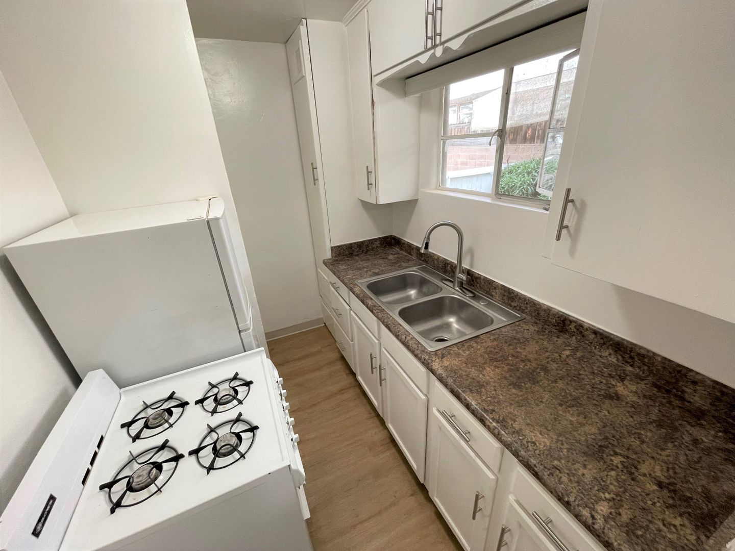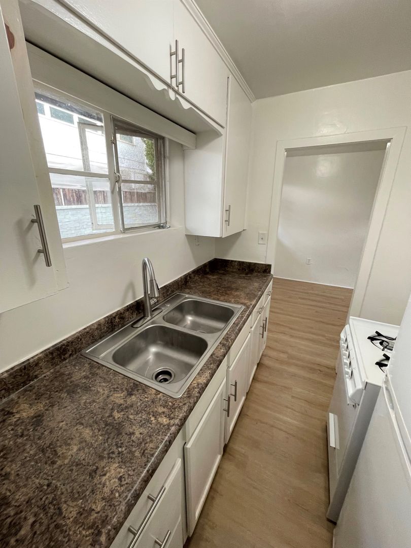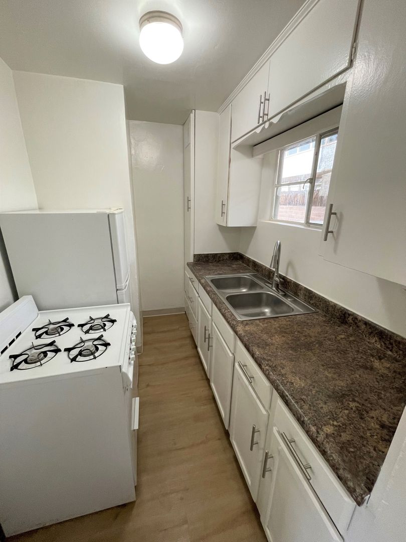 Quaint 1 Bedroom 1 Bath Apartment in a desirable Midtown Ventura neighborhood! This apartment has been updated with fresh interior paint, upgraded laminate wood flooring, newer blinds and a new bathroom vanity! The galley kitchen is equipped with a gas stove and refrigerator.