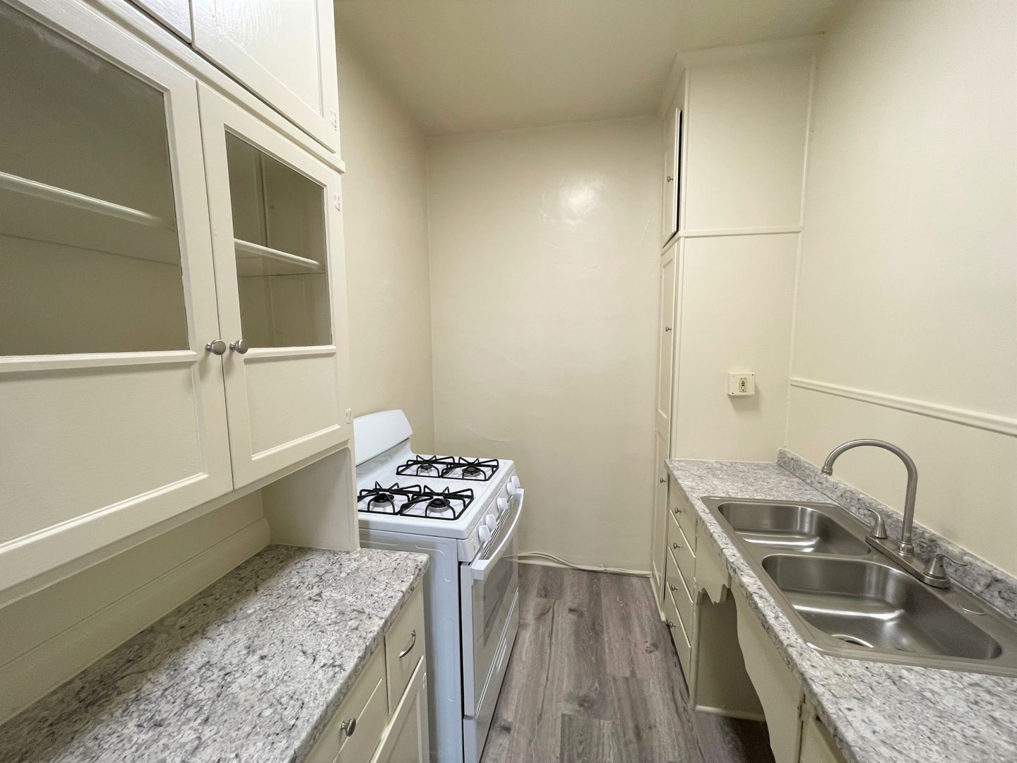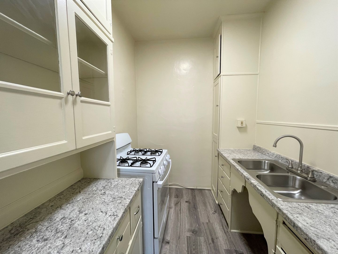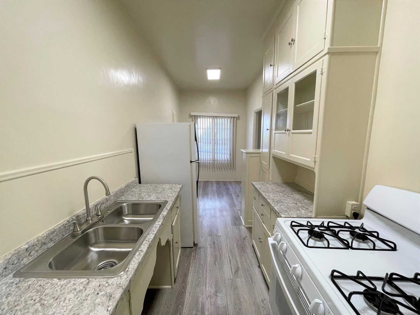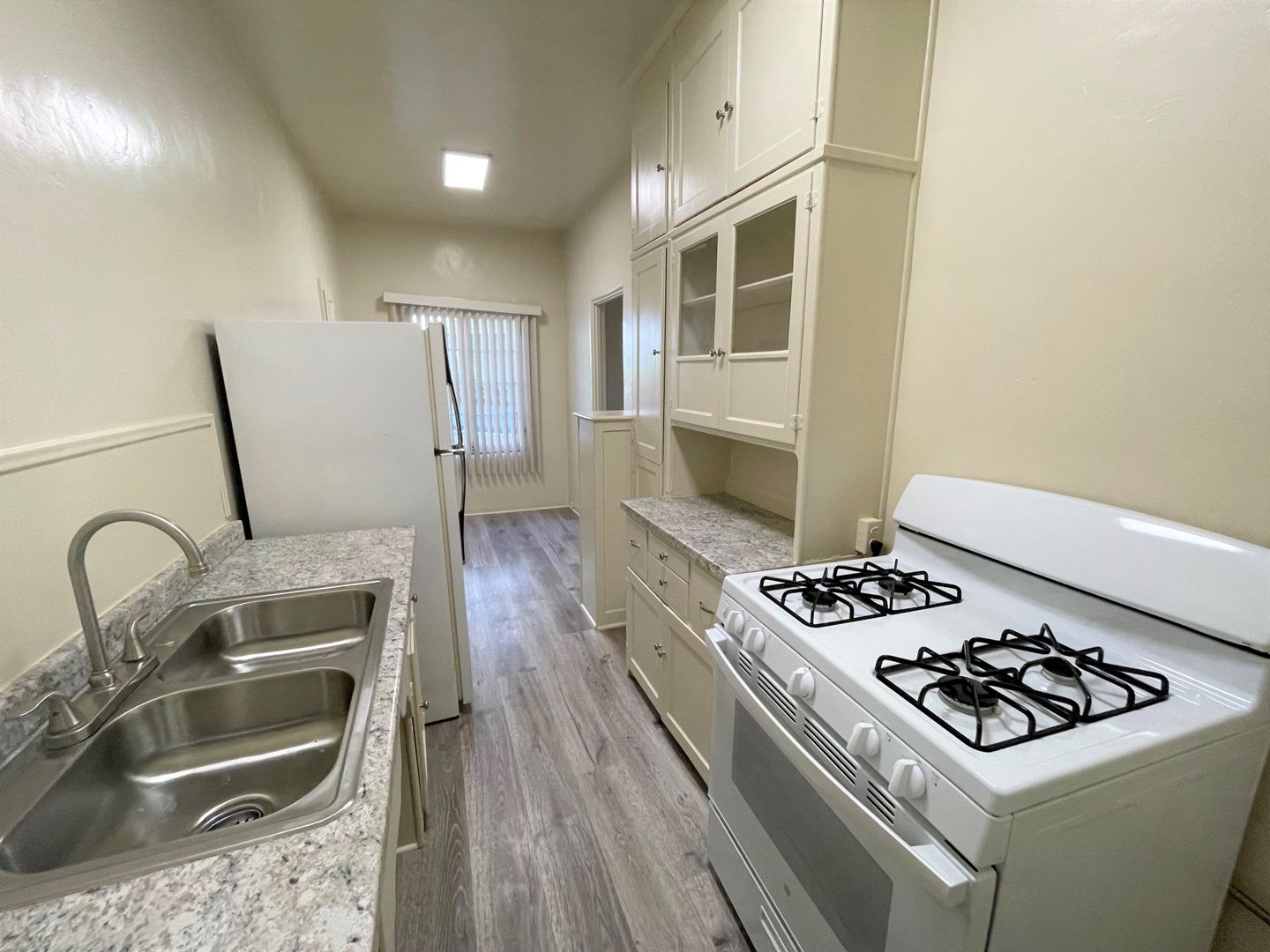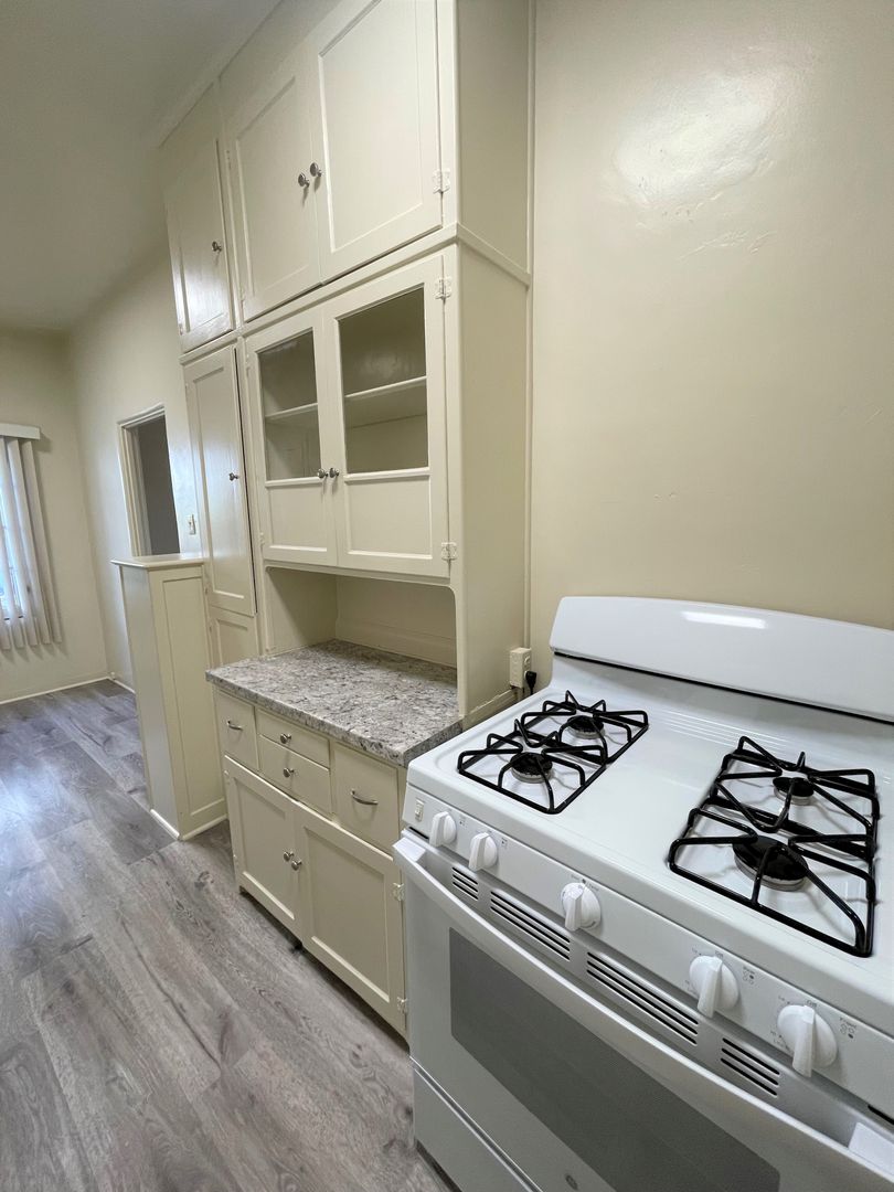 Enjoy living in the charming building of the Casa Vista Apartments located in Historic Downtown Ventura. This studio is located on the bottom floor of the building and boasts gorgeous OCEAN VIEWS! The studio has just been updated with newer high end laminate wood flooring, fresh interior paint and new blinds. Your galley kitchen has a small eat-in dining area with continued laminate wood flooring, newer grey tone countertops and a new gas stove and refrigerator provided. The spacious living area has a huge walk-in closet and large windows offering a ton of natural sunlight!