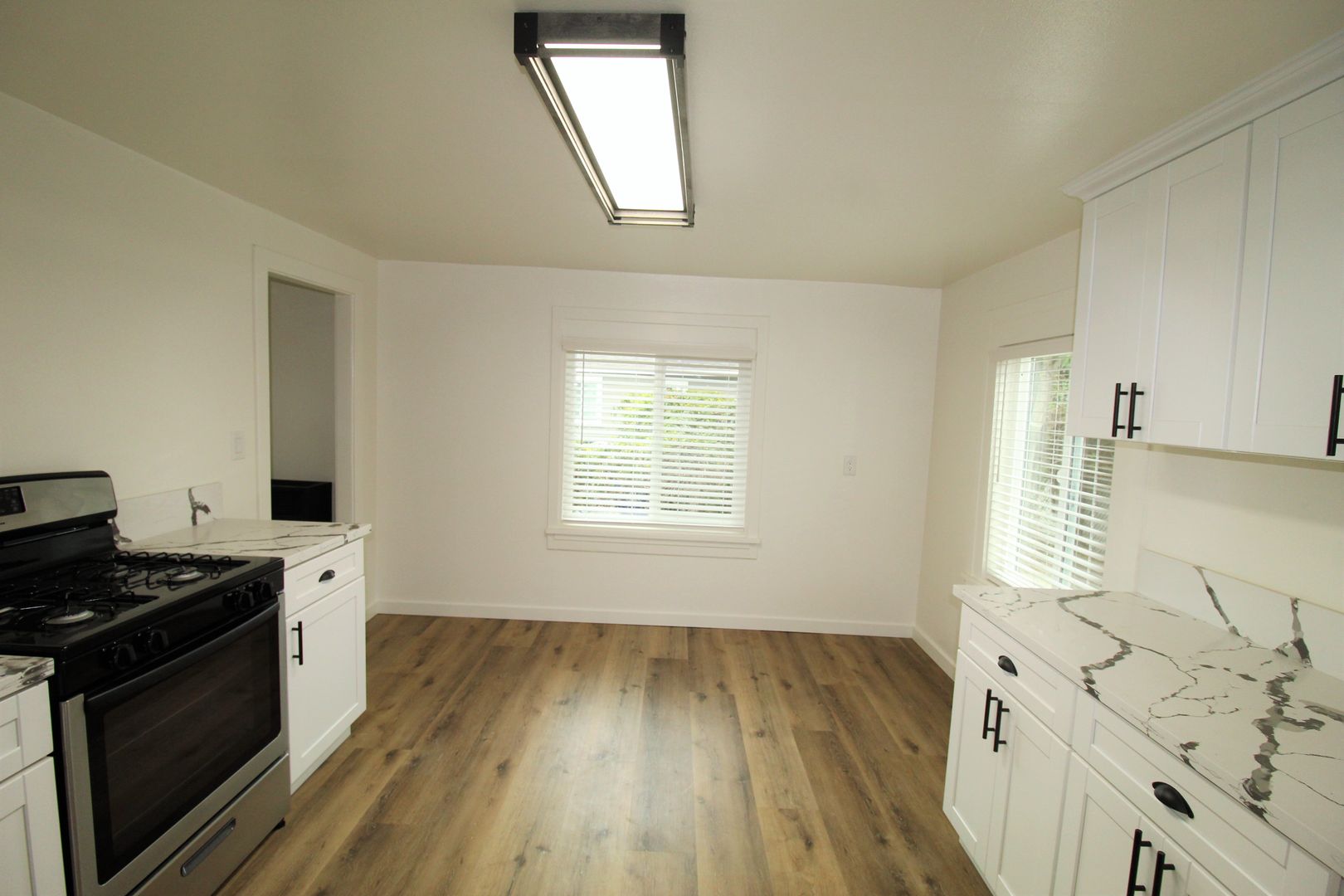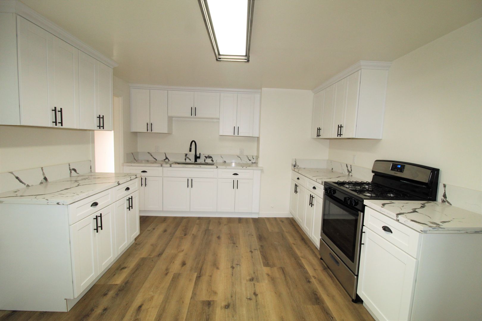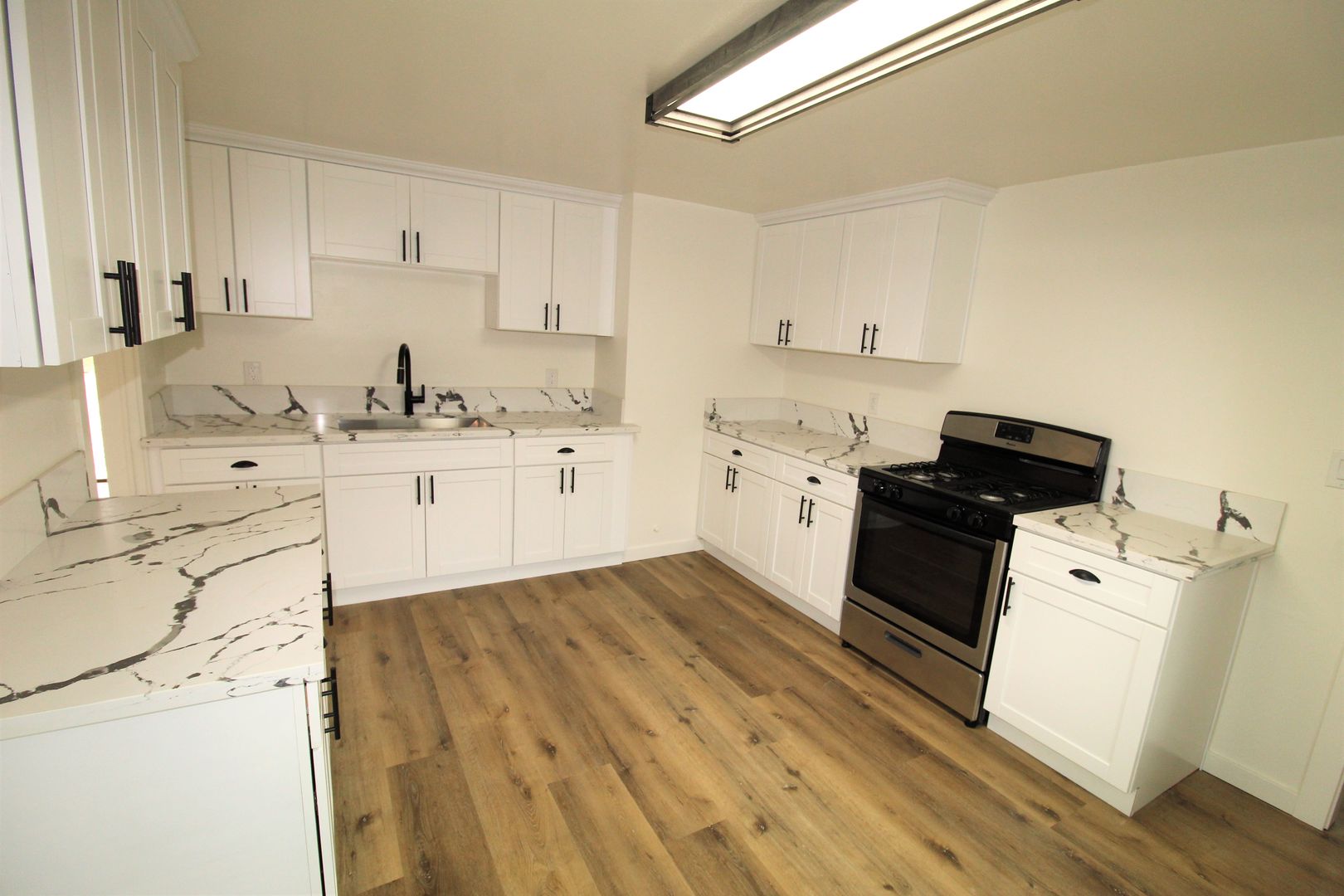 The interior of this 1 Bedroom 1 Bath Camarillo Home w/Additional Den or Office Space has been completely remodeled with a modern farmhouse design! The oversized living room has newer laminate wood flooring and flows into your upgraded kitchen featuring white shaker style cabinetry with soft closing drawers, bold quartz countertops and hardware and a stainless steel gas stove and refrigerator. A small space within the kitchen is perfect to be used as an eat-in dining area. Laminate wood flooring continues through the bedroom into the private bath boasting a large walk-in tile shower, new vanity and lighting. The additional room off the living space is perfect to be used as an office or den.