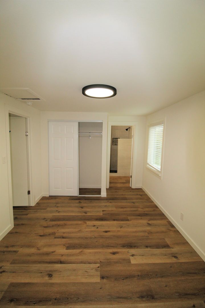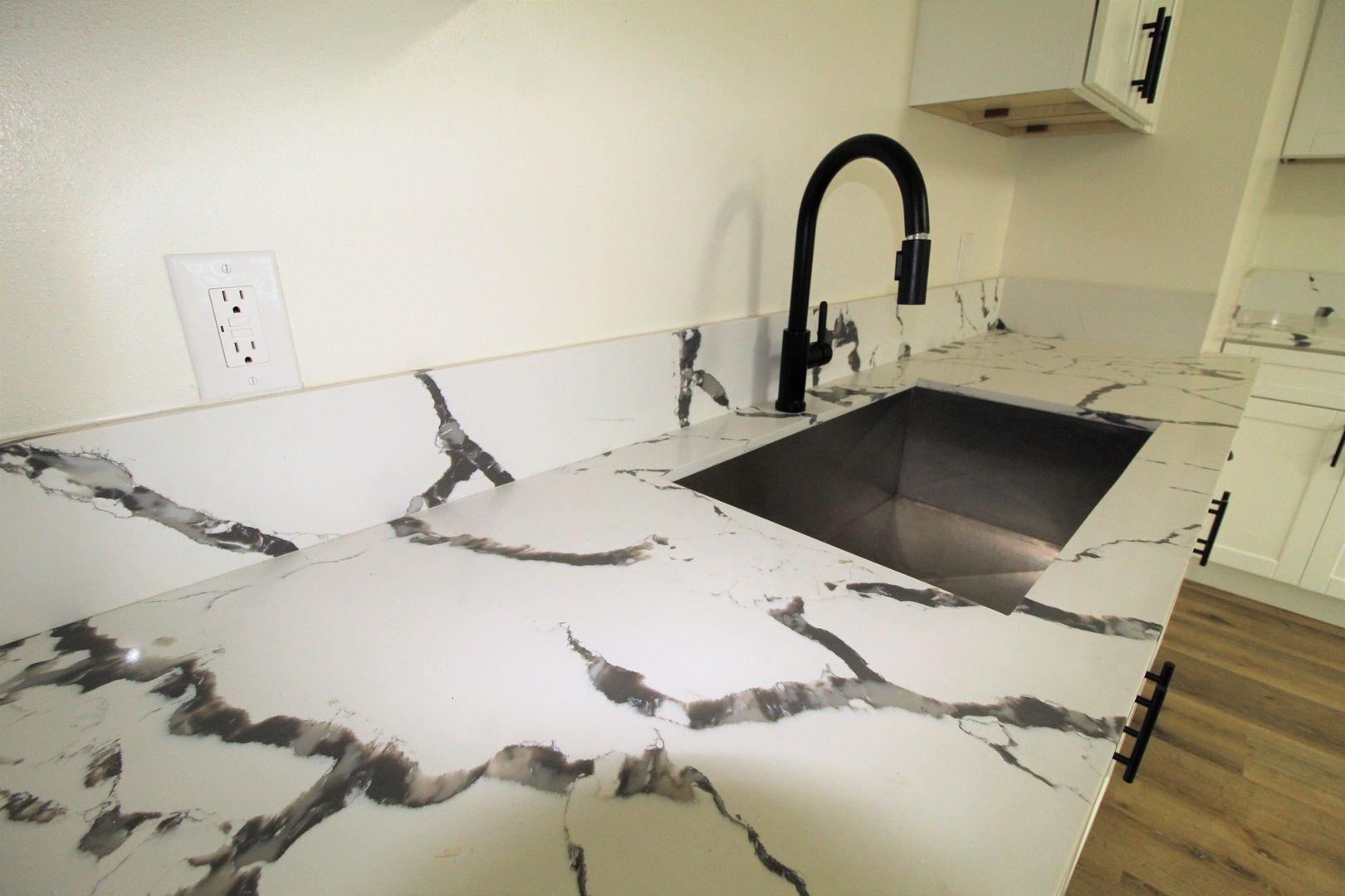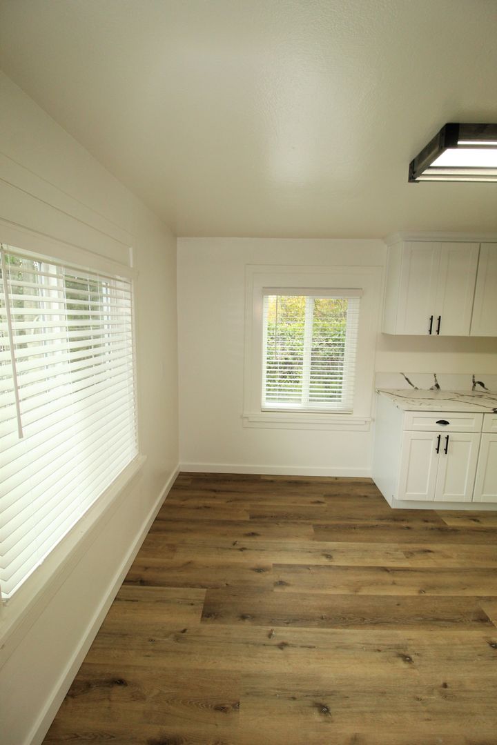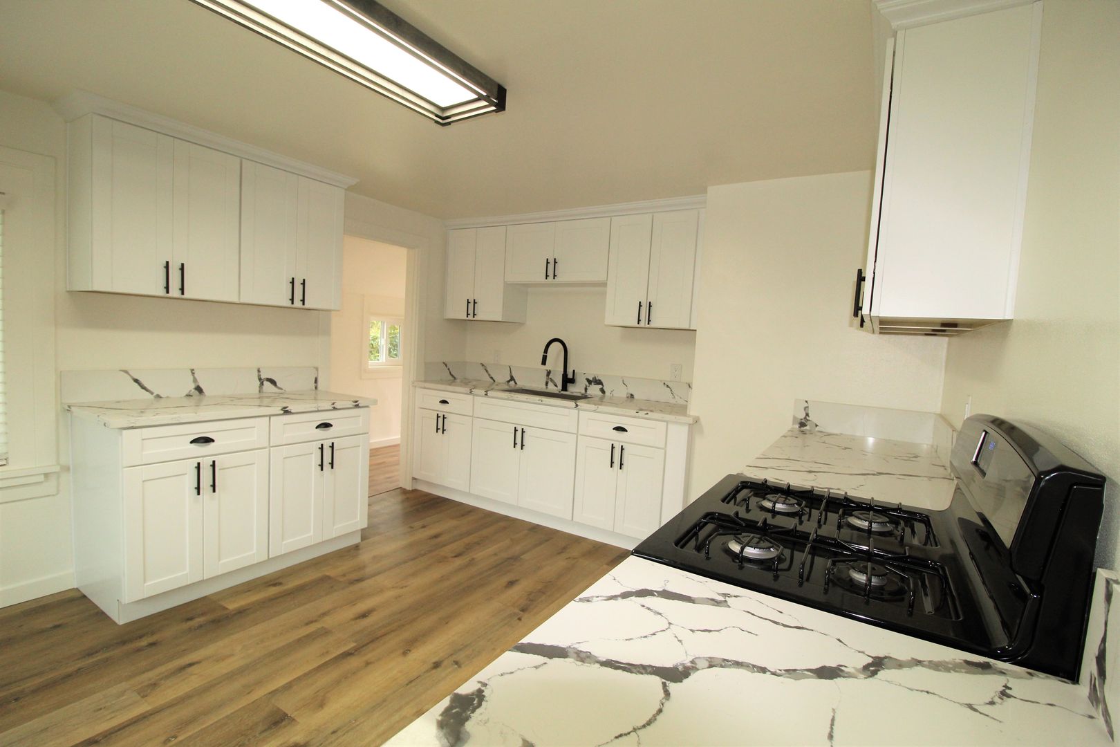 The interior of this 1 Bedroom 1 Bath Camarillo Home w/Additional Den or Office Space has been completely remodeled with a modern farmhouse design! The oversized living room has newer laminate wood flooring and flows into your upgraded kitchen featuring white shaker style cabinetry with soft closing drawers, bold quartz countertops and hardware and a stainless steel gas stove and refrigerator. A small space within the kitchen is perfect to be used as an eat-in dining area. Laminate wood flooring continues through the bedroom into the private bath boasting a large walk-in tile shower, new vanity and lighting. The additional room off the living space is perfect to be used as an office or den.