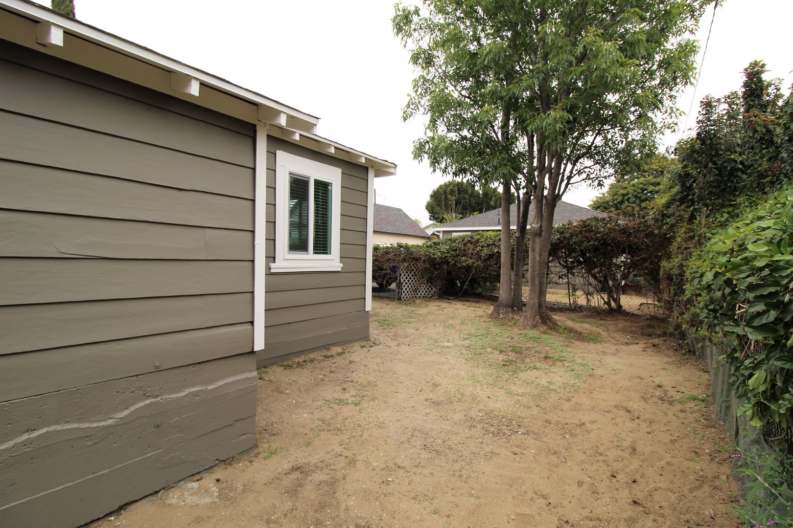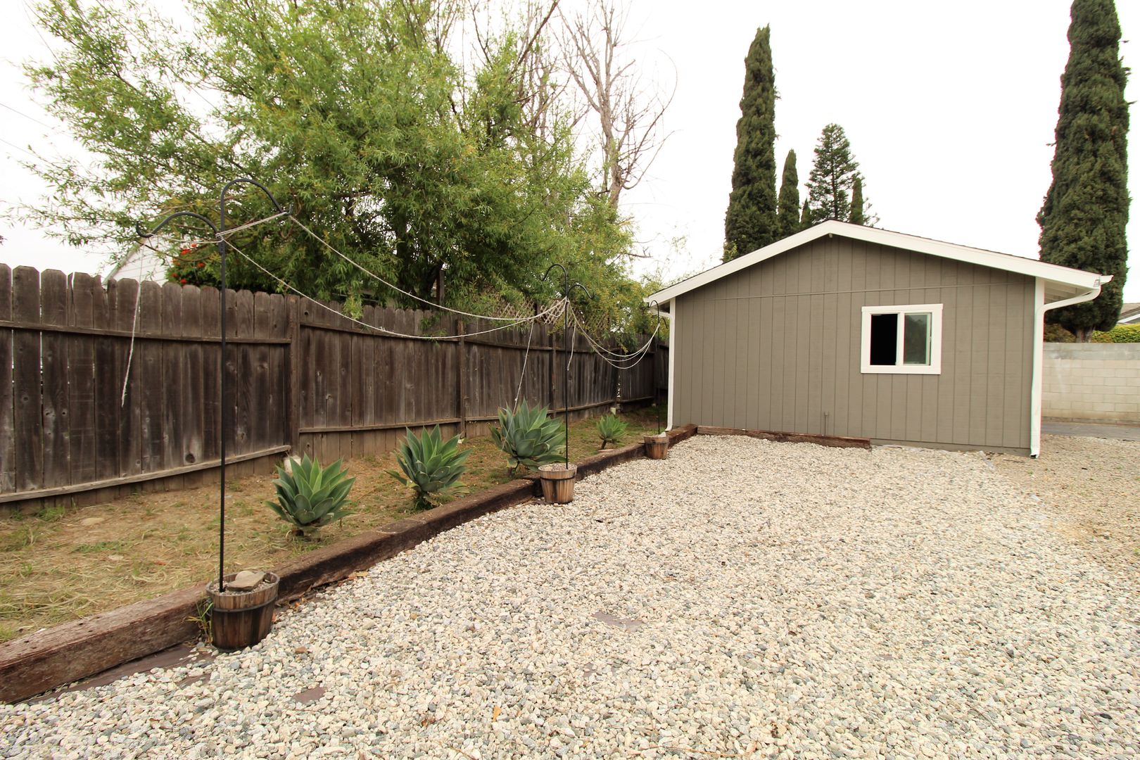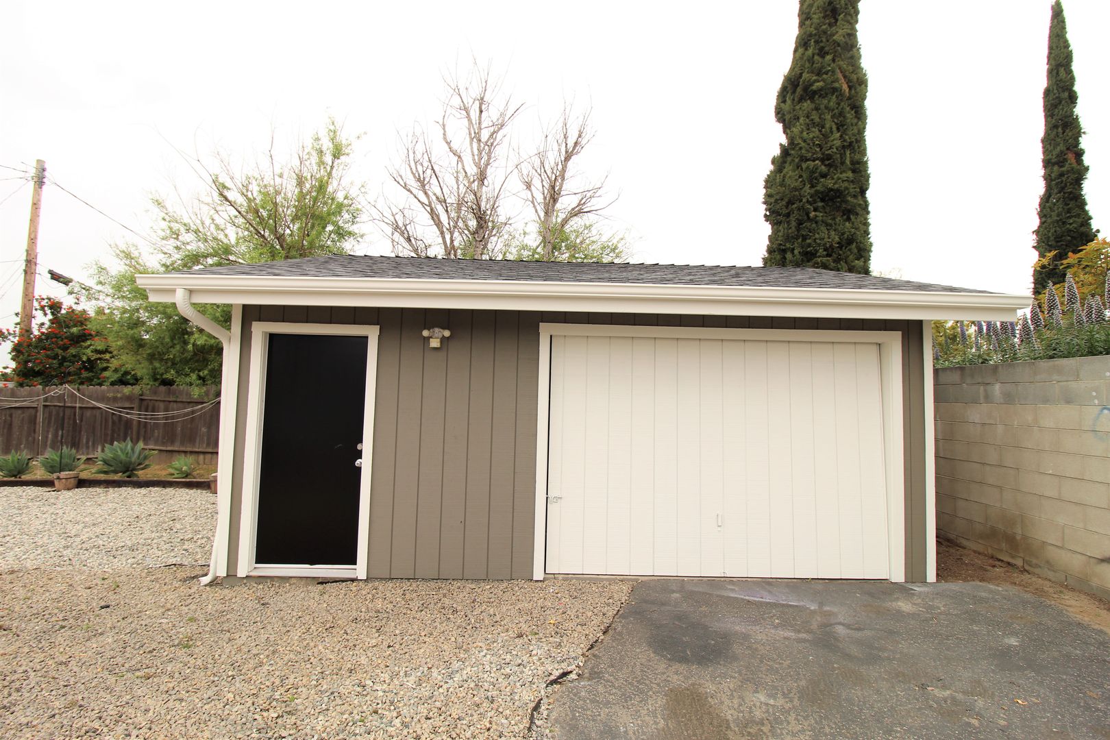 A separate laundry room is located off the kitchen with washer/dryer hookups. Other desirable upgrades include double pane windows, upgraded wood faux blinds and fresh exterior paint! The home boasts an extra large backyard perfect for entertaining! Detached oversized single car garage (enough room to park one vehicle and second half used for storage). Water, trash and landscaping services included in your rent.