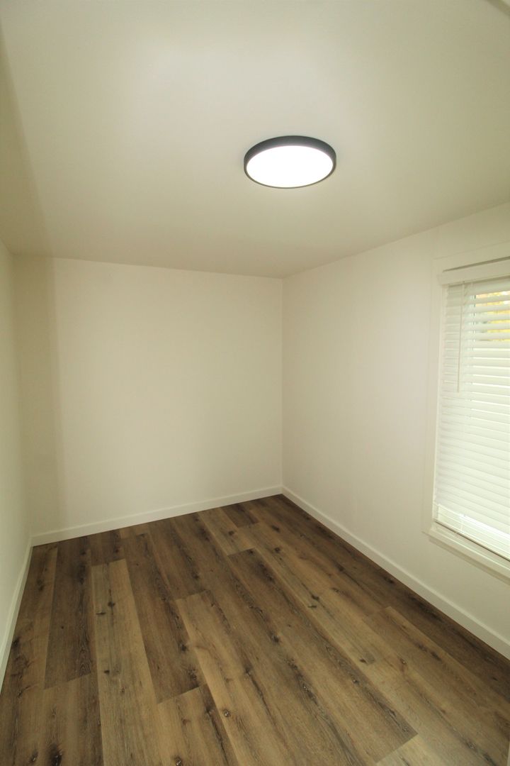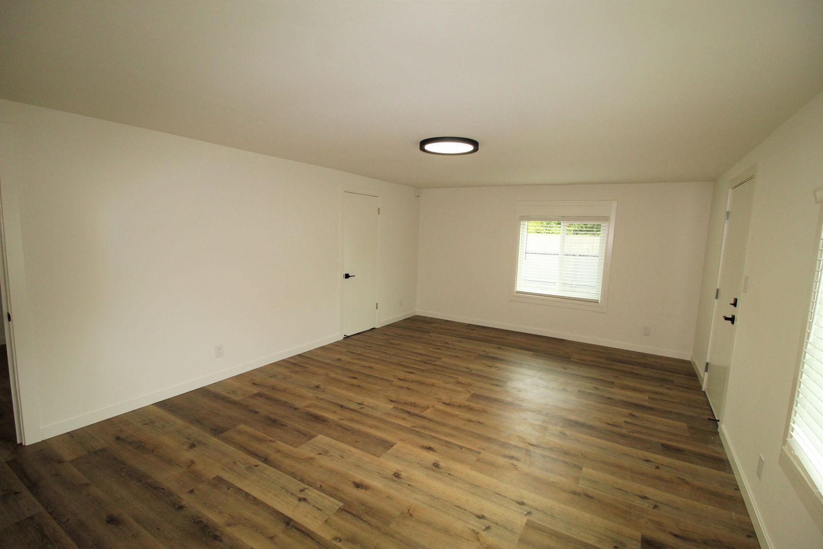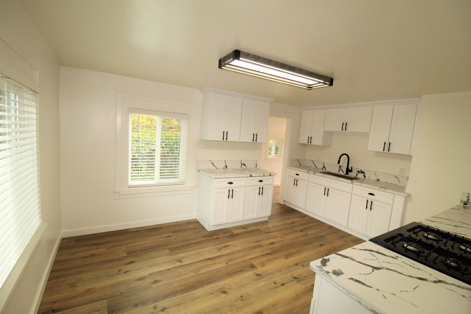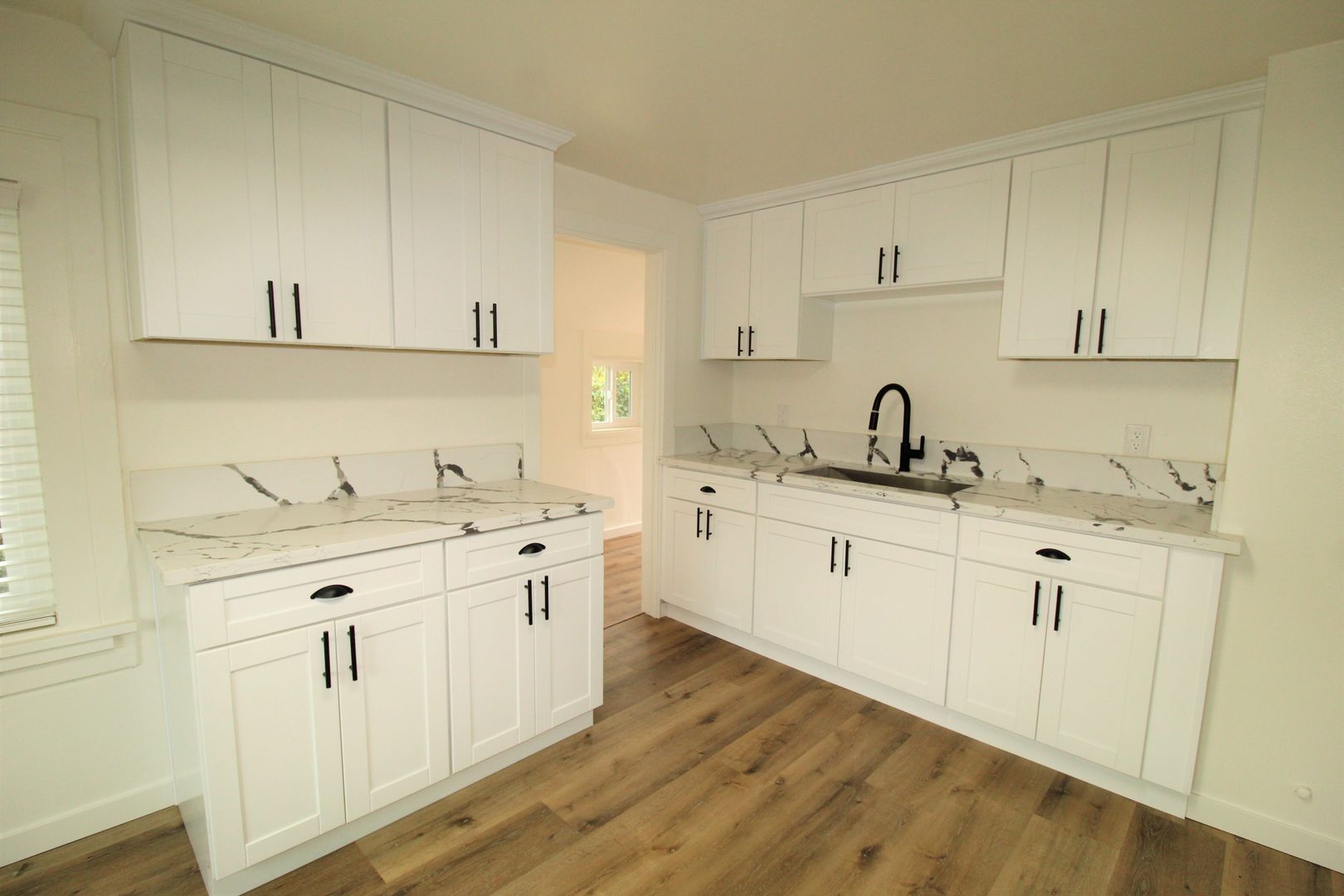 A separate laundry room is located off the kitchen with washer/dryer hookups. Other desirable upgrades include double pane windows, upgraded wood faux blinds and fresh exterior paint! The home boasts an extra large backyard perfect for entertaining! Detached oversized single car garage (enough room to park one vehicle and second half used for storage). Water, trash and landscaping services included in your rent.