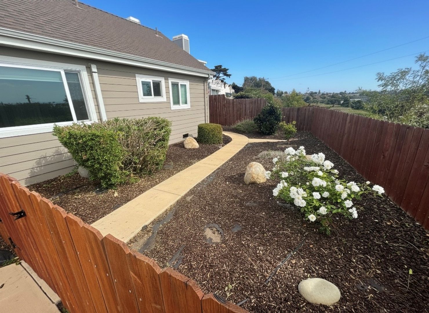 The backyard is designed for relaxation and entertaining—lush, beautiful landscaping sets the stage for ocean-view sunsets, while a gazebo and bocce ball court create the perfect space for gatherings.