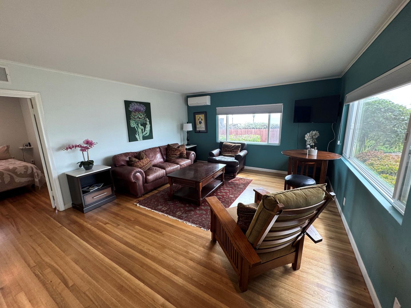 All four bedrooms feature hardwood flooring and direct access to a bathroom, including a Jack-and-Jill bath. The primary suite is a true sanctuary, complete with a private seating area, mini-split AC/heating unit, and ensuite bathroom with built-in breakfast/coffee buffet with mini refrigerator and microwave. For added comfort, the living room is equipped with a portable AC unit.