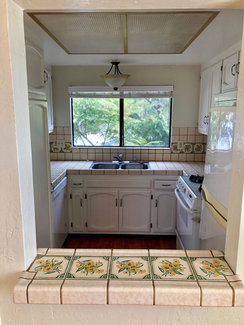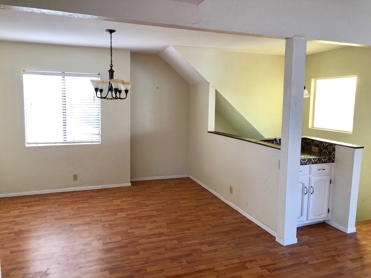 Adorable Pierpont Beach Home just steps away from the sand! This two-story 3 bedroom 2 bath home has a great layout! Downstairs features two spacious bedrooms and a full bathroom. Walking up to the second floor you will appreciate the huge living area featuring vaulted white beam ceilings, laminate wood flooring, decorative faux fireplace (not operational) and direct access to your private balcony overlooking beautiful palm trees! Open to the living room is a full dining room with wet bar and a quaint kitchen featuring white cabinets, decorative tile counter tops with a gas stove, dishwasher, refrigerator and built-in microwave provided. The master bedroom is also located on the second floor with plush carpeting and direct access to the second bathroom.
