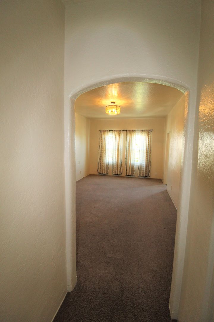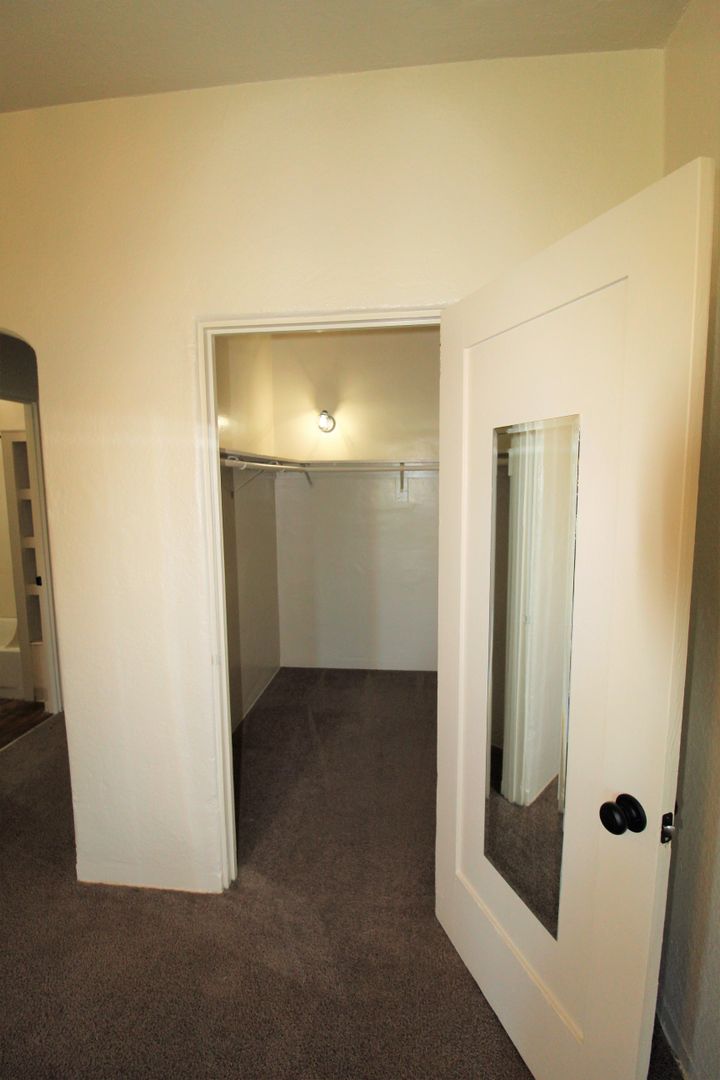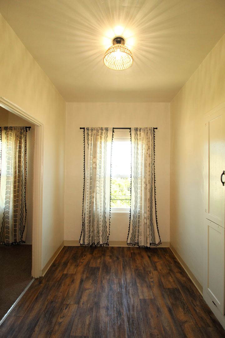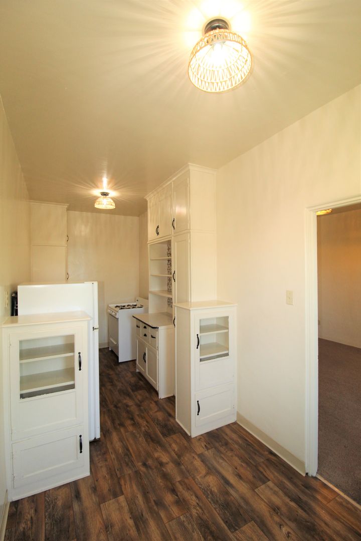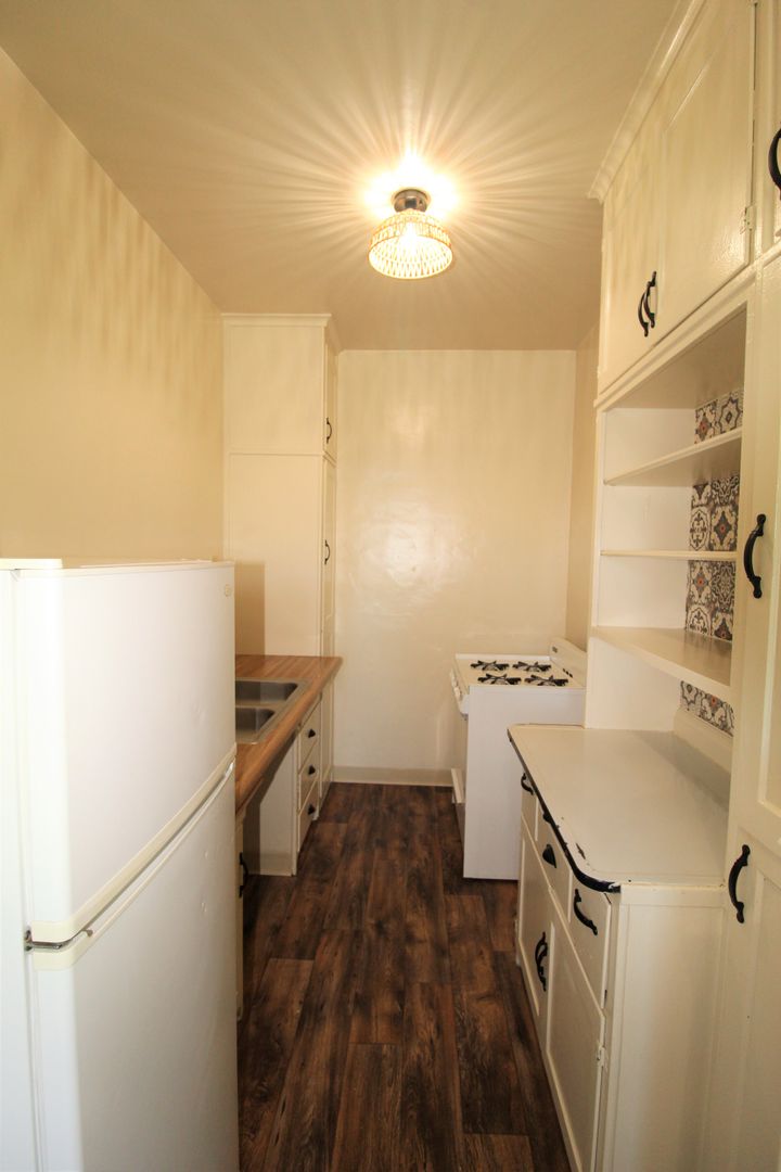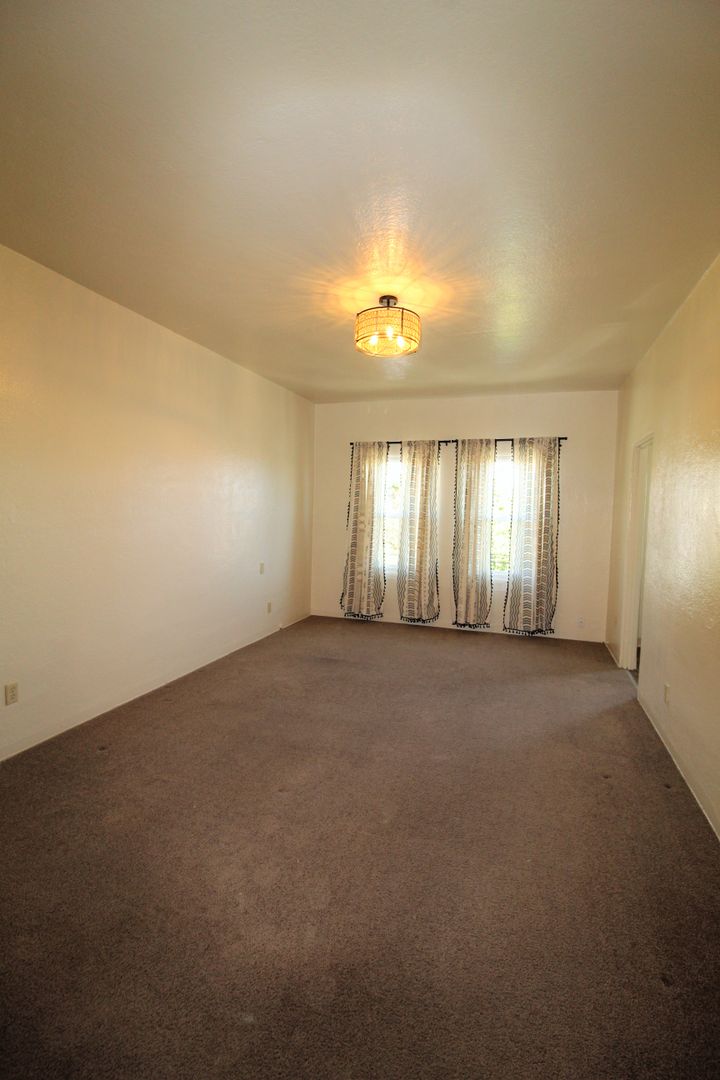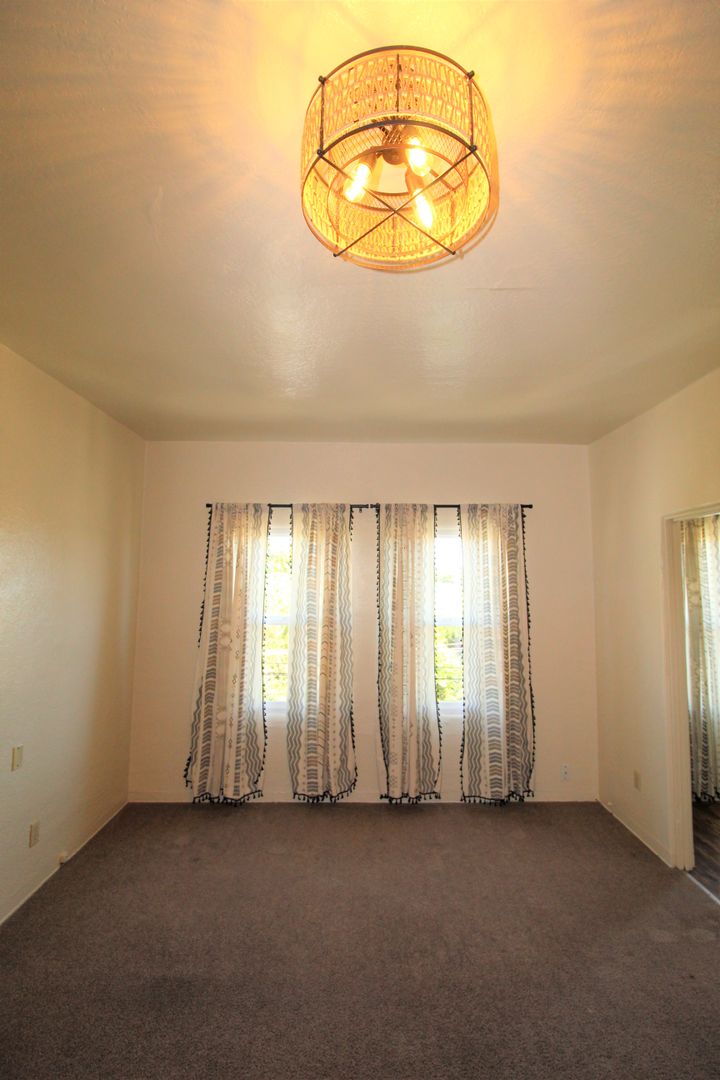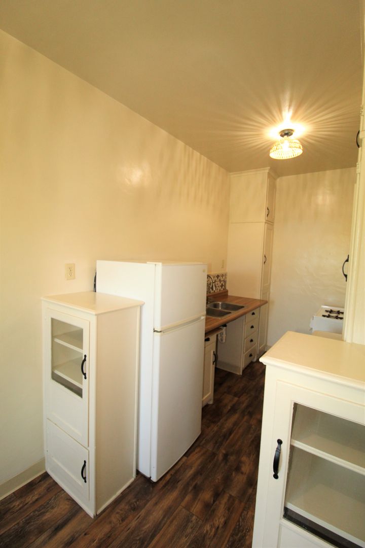 Enjoy living in the charming building of the Casa Vista Apartments located in Historic Downtown Ventura! This upstairs studio has a great location overlooking Cemetery Park. The spacious studio has a full size kitchen with a small dining area featuring newer wood like vinyl flooring, historic charm with original cabinetry with updated hardware and accent backsplash. The living space has plush carpeting, a huge walk-in closet and offers a lot of natural sunlight! Enjoy a touch of boho design with updated lighting, curtains, backsplash, and fixtures.