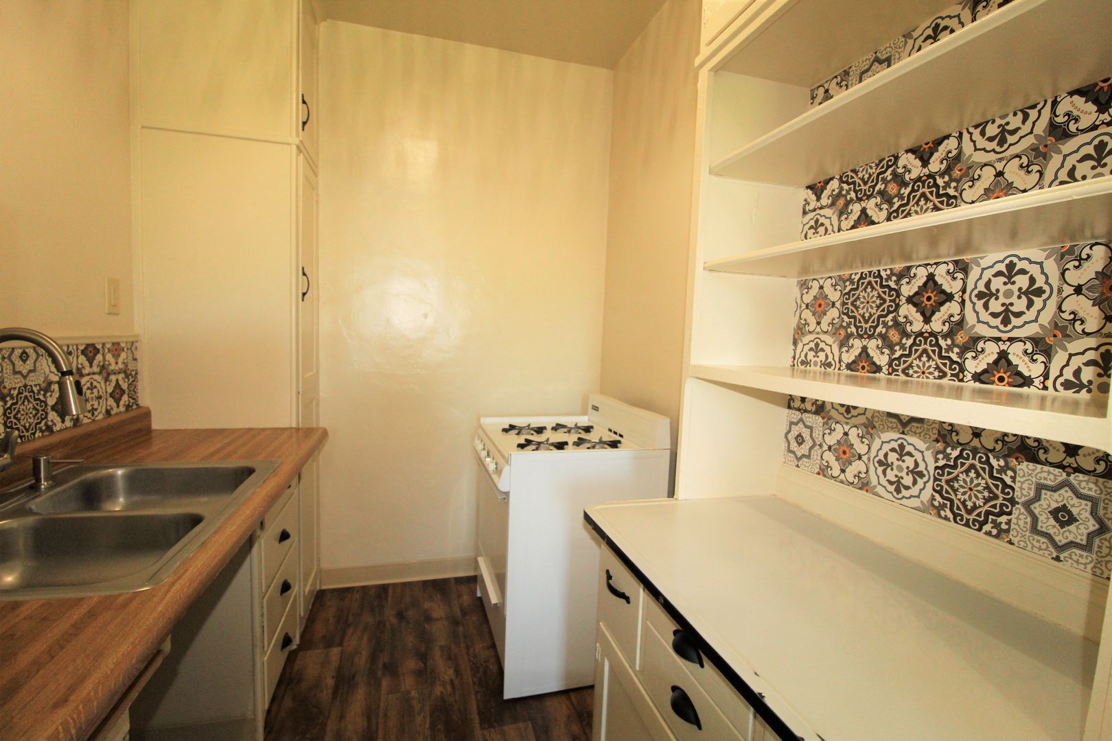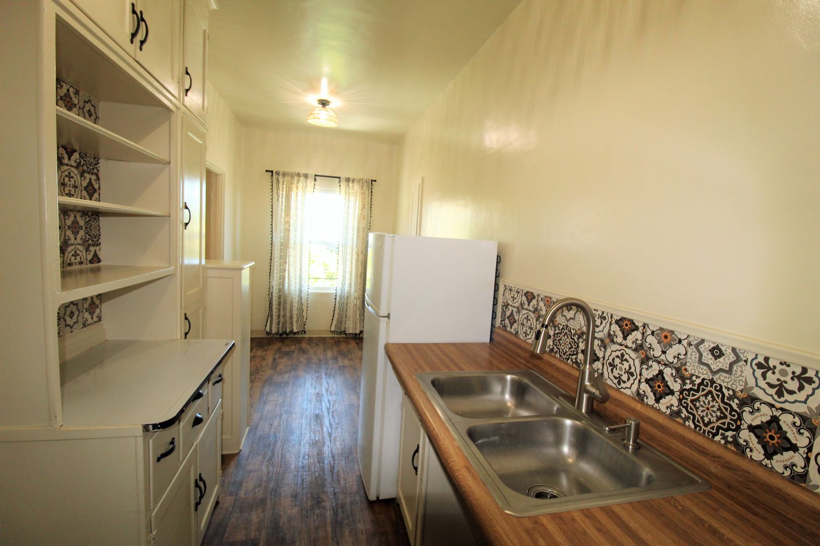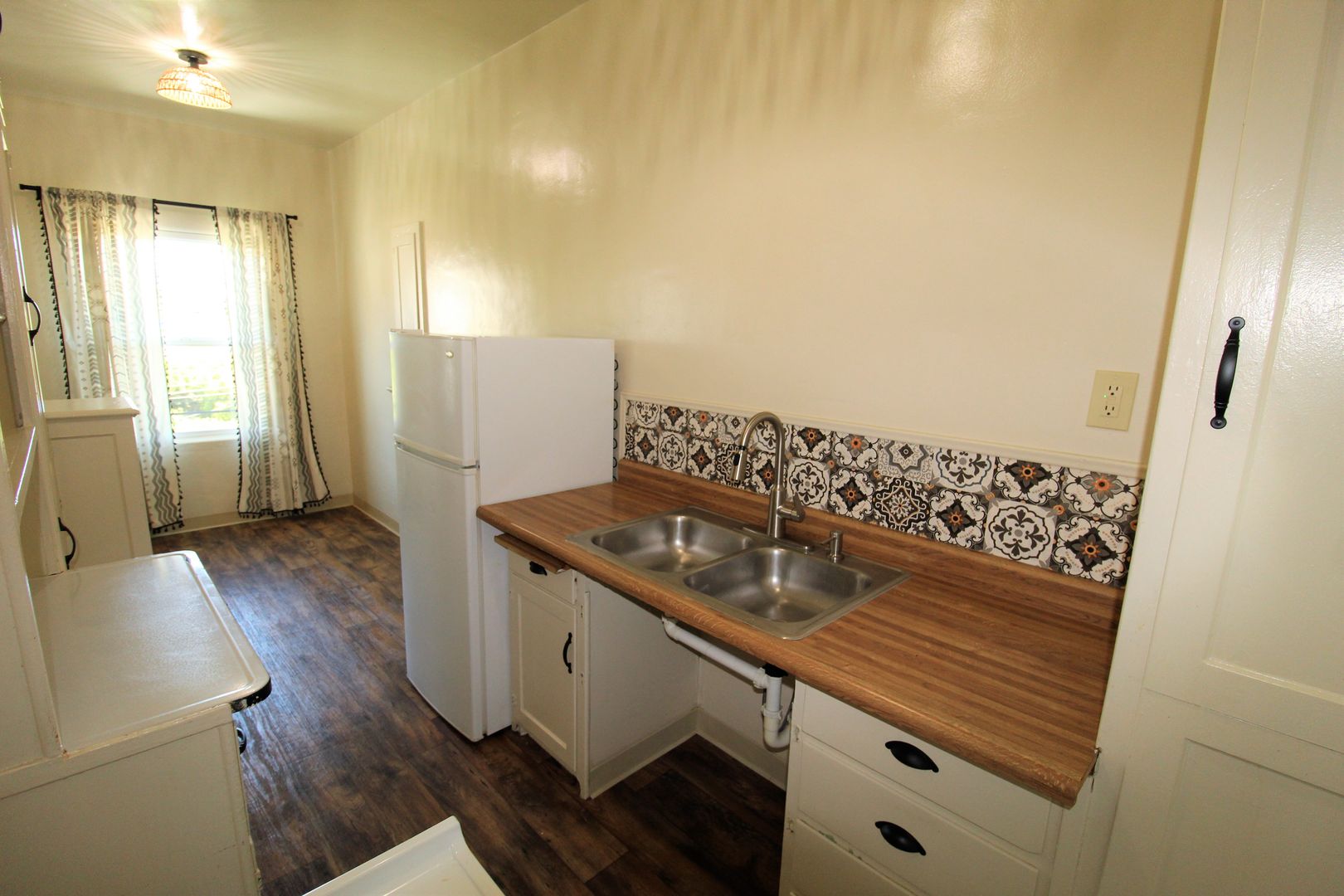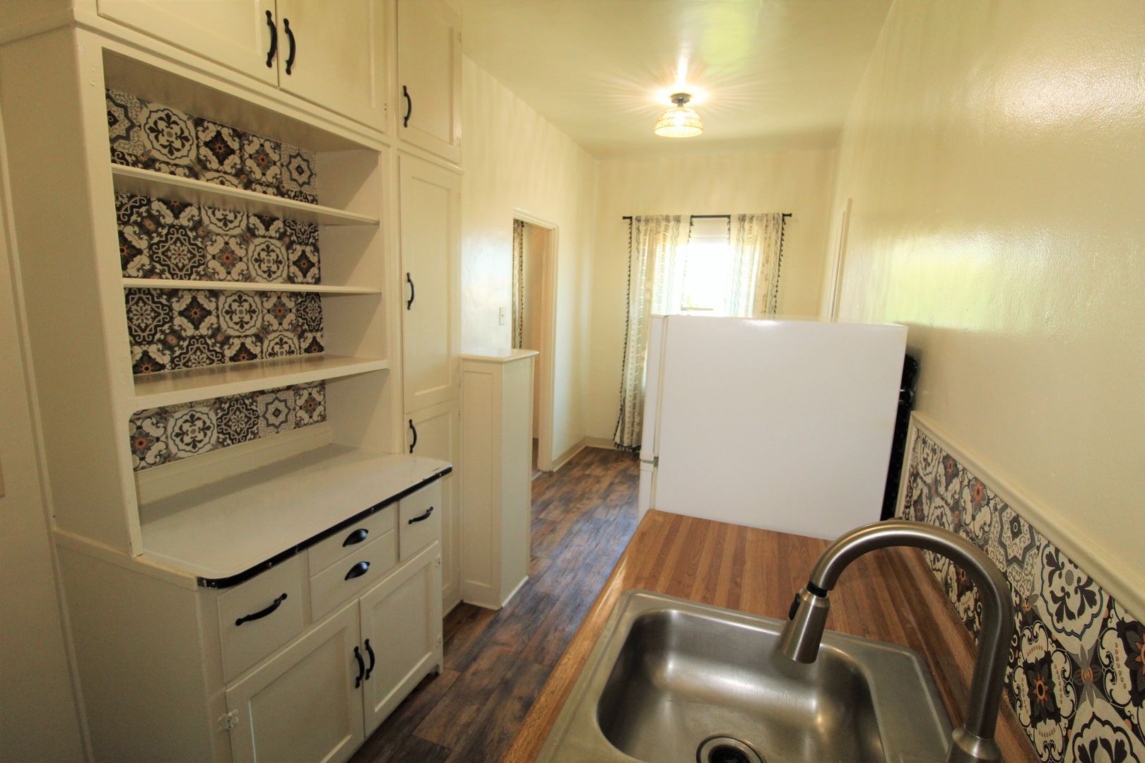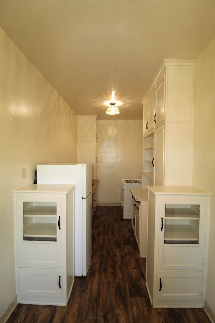 Enjoy living in the charming building of the Casa Vista Apartments located in Historic Downtown Ventura! This upstairs studio has a great location overlooking Cemetery Park. The spacious studio has a full size kitchen with a small dining area featuring newer wood like vinyl flooring, historic charm with original cabinetry with updated hardware and accent backsplash. The living space has plush carpeting, a huge walk-in closet and offers a lot of natural sunlight! Enjoy a touch of boho design with updated lighting, curtains, backsplash, and fixtures.
