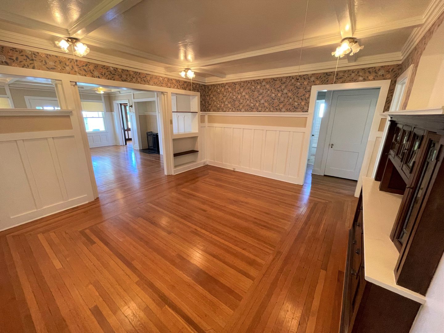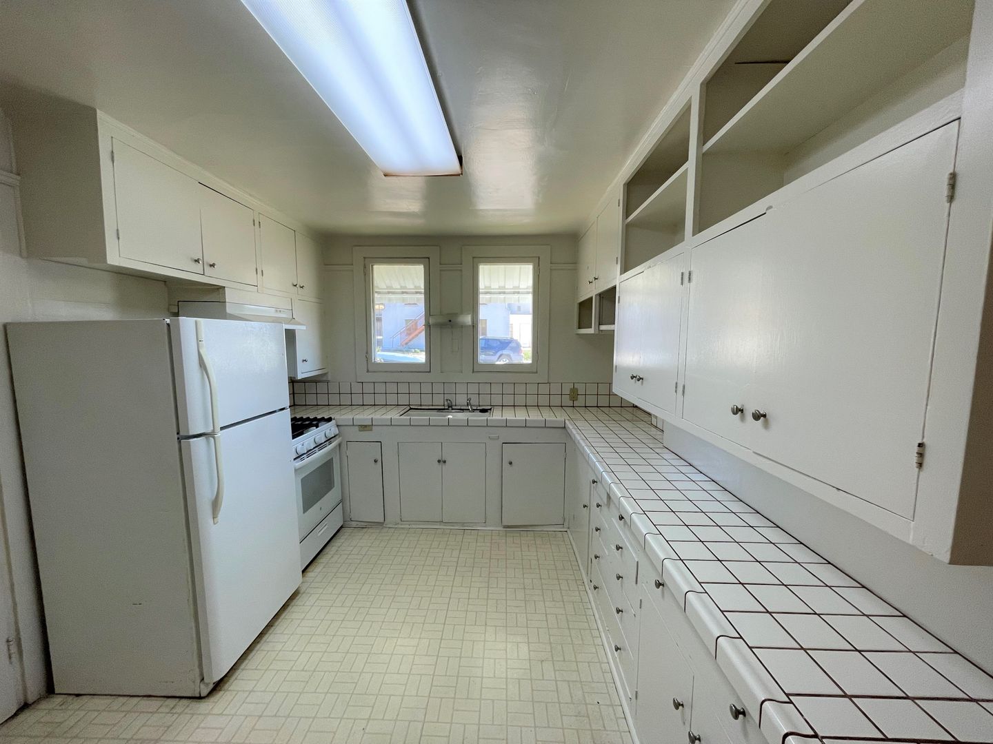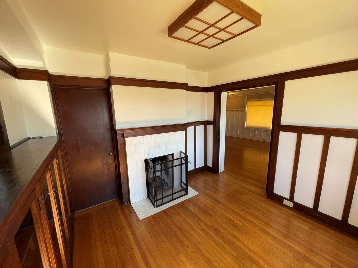 Charming Victorian Style Home located in Downtown Ventura! This single story 2 Bedroom 1.5 Bath with Den has a ton of original character! Entering the property there is a completely open living/dining floor plan. The living room features beautiful original hardwood flooring, wood trim detailing and a wood burning fireplace. The large dining room has continued hardwood flooring, built-in china hutch and window seating. Both bedrooms are very spacious in size with carpeting, great closet space and built-ins. The separate den is perfect to be used as an additional living space or office, features hardwood flooring, built-in cabinetry and a second wood burning fireplace. The kitchen features freshly painted cabinets, tile counter tops with a gas stove and refrigerator provided. Enjoy having a large separate laundry room off the kitchen with washer/dryer hookups.