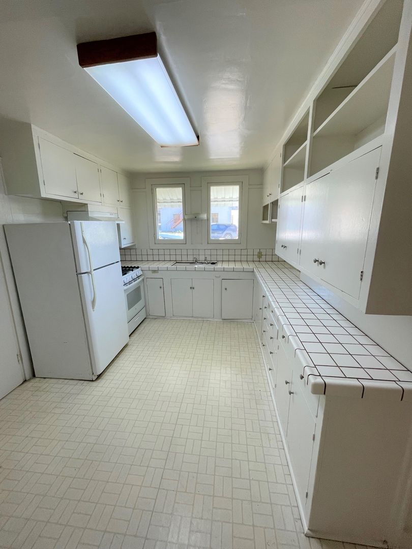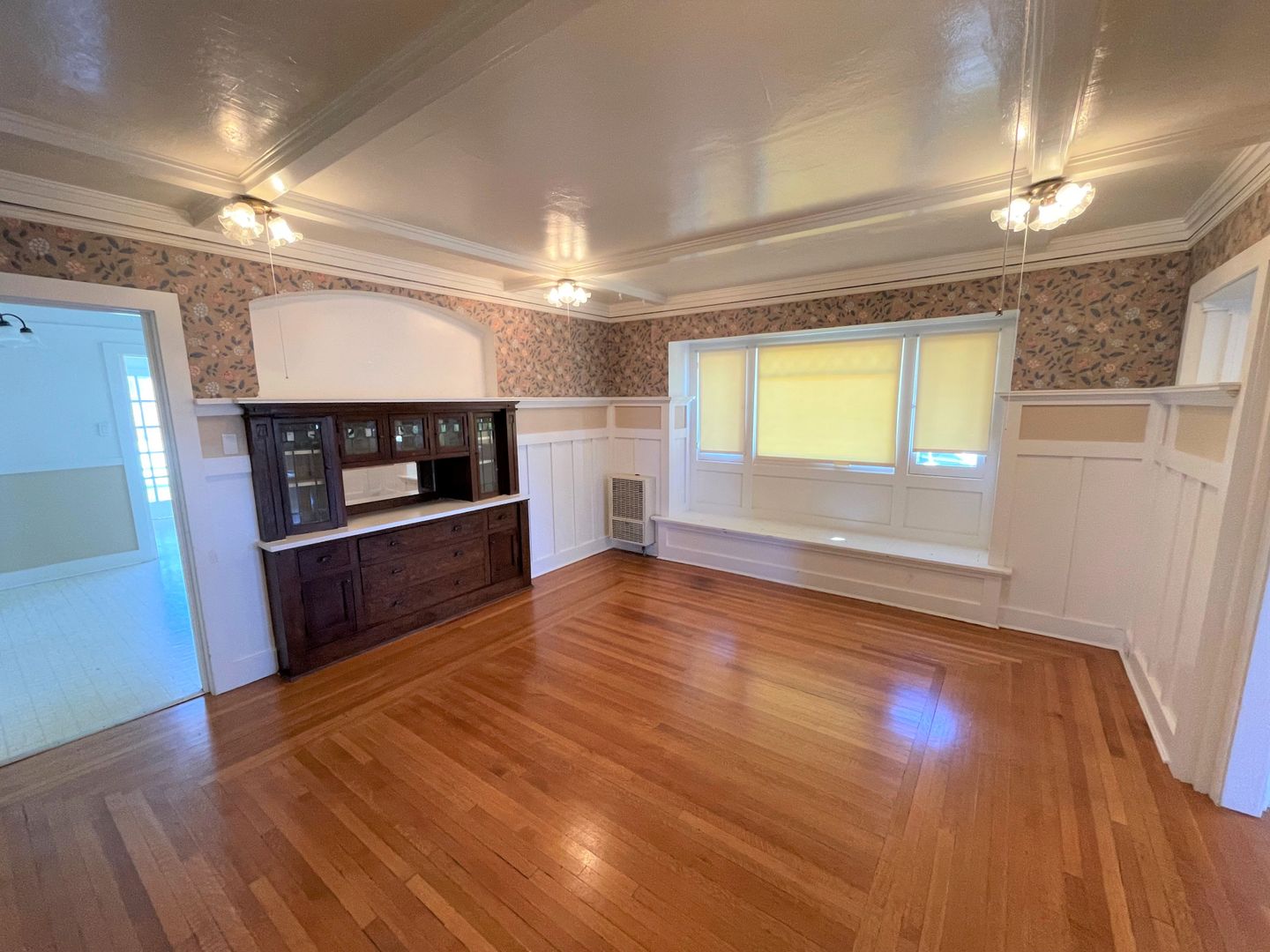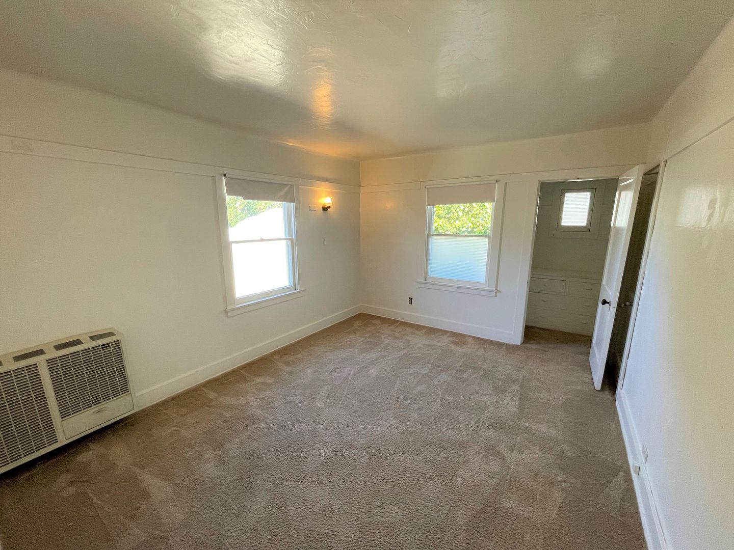 Charming Victorian Style Home located in Downtown Ventura! This single story 2 Bedroom 1.5 Bath with Den has a ton of original character! Entering the property there is a completely open living/dining floor plan. The living room features beautiful original hardwood flooring, wood trim detailing and a wood burning fireplace. The large dining room has continued hardwood flooring, built-in china hutch and window seating. Both bedrooms are very spacious in size with carpeting, great closet space and built-ins. The separate den is perfect to be used as an additional living space or office, features hardwood flooring, built-in cabinetry and a second wood burning fireplace. The kitchen features freshly painted cabinets, tile counter tops with a gas stove and refrigerator provided. Enjoy having a large separate laundry room off the kitchen with washer/dryer hookups.