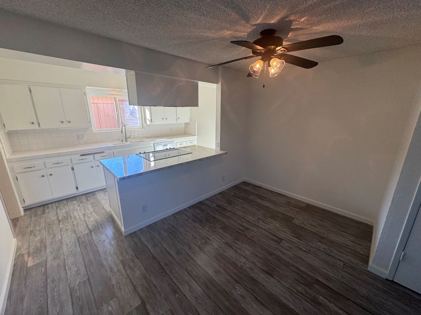 Downstairs features a totally open living space with a large living area flowing into the dining and kitchen. The kitchen includes a generous peninsula that overlooks the dining area—perfect for casual meals, hosting, or keeping the conversation going while you cook. You’ll also enjoy fresh interior paint, updated fixtures, and tons of natural sunlight throughout.