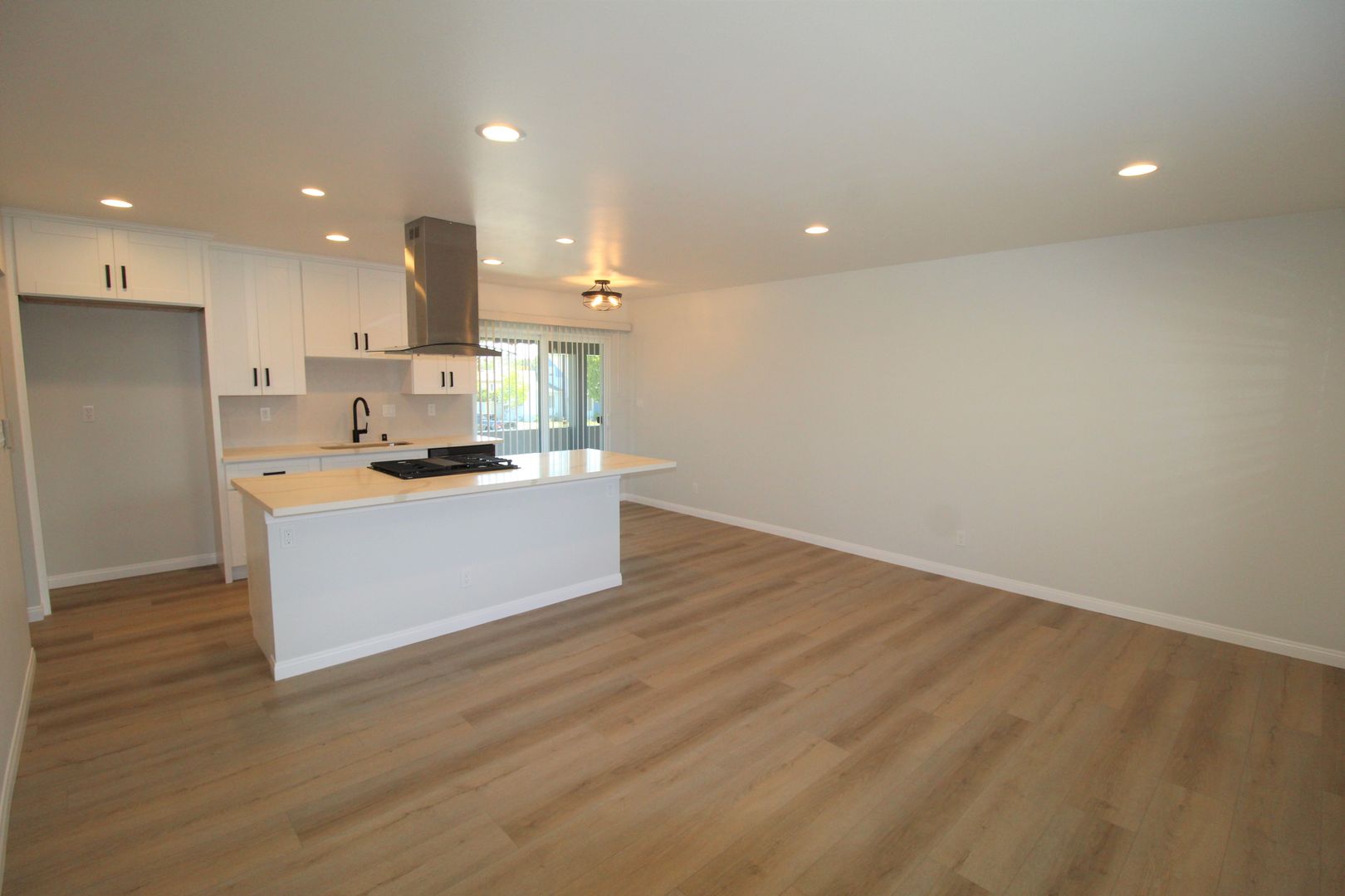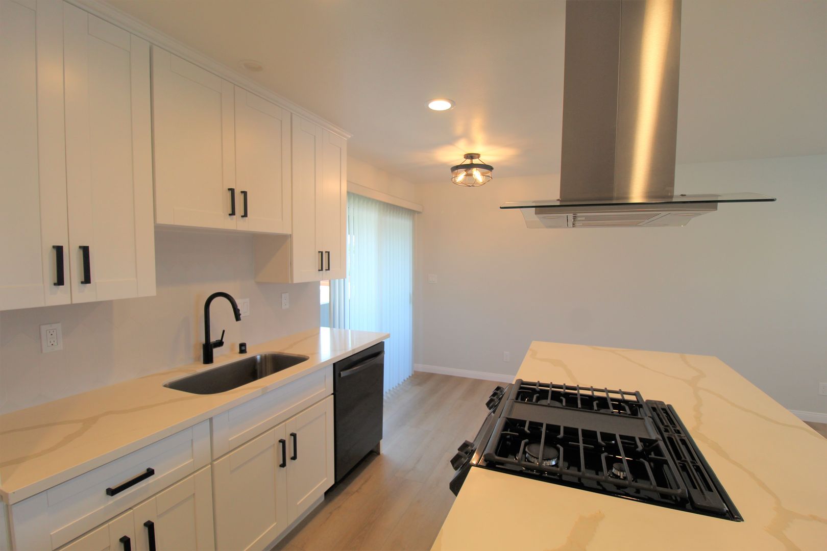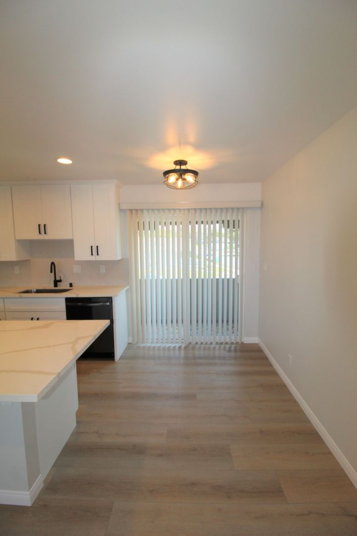 Welcome to the Casa Madrid Apartments! This upstairs 1 bedroom 1 bath apartment has a great Midtown Ventura location in walking distance of the Pacific View Mall. The interior of this apartment has been completely remodeled. The apartment has a completely open layout with your kitchen overlooking the living and dining space. The kitchen has been tastefully designed with shaker style cabinetry, quartz countertops, and stainless steel gas stove, refrigerator, and dishwasher. High end laminate wood flooring flows throughout the space, also featuring a completely remodeled bathroom. This apartment is one of the desirable locations with a private balcony!